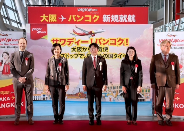 นายปิ่นยศ พิบูลสงคราม นายปิ่นยศ พิบูลสงคราม รองประธานเจ้าหน้าที่บริหาร ฝ่ายการพาณิชย์และลูกค้าสัมพันธ์ สายการบินเวียตเจ็ทไทยแลนด์ (ที่ 3 จากซ้าย) ร่วมเป็นประธานในพิธีเปิดเที่ยวบินปฐมฤกษ์ เส้นทาง "กรุงเทพฯ (สุวรรณภูมิ) - โอซากา (คันไซ)" ที่ให้บริการด้วยเครื่องบินโบอิ้งรุ่น 737-8 เพื่อส่งเสริมการเชื่อมโยงประเทศไทยสู่แหล่งท่องเที่ยวและเมืองเศรษฐกิจที่สำคัญของภูมิภาค พร้อมนำเสนอตัวเลือกการเดินทางที่คุ้มค่าและสะดวกสบายแก่ผู้โดยสาร โดยได้รับเกียรติจาก นางสาวมธุรส วัฒนโกเมร ผู้อำนวยการ การท่องเที่ยวแห่งประเทศไทย (ททท.) สำนักงานโอซากา ประเทศญี่ปุ่น (ที่ 2 จากซ้าย) นางพักตร์ประไพ คำบรรลือ รองกงสุลใหญ่ ณ นครโอซากา (ที่ 4 จากซ้าย) นายเคนอิจิ ไซโต ผู้อำนวยการท่าอากาศยานนานาชาติคันไซ กรมการบินพลเรือนภาคตะวันตก กระทรวงที่ดิน โครงสร้างพื้นฐาน การขนส่ง และการท่องเที่ยวแห่งญี่ปุ่น (ที่ 5 จากซ้าย) และ และ นายฟาเบียง กูร์ดง ประธานเจ้าหน้าที่บริหารสายงานพาณิชย์ ท่าอากาศยานนานาชาติคันไซ (ที่ 1 จากซ้าย) ร่วมเปิดพิธี ณ ท่าอากาศยานนานาชาติคันไซ ประเทศญี่ปุ่น เมื่อเร็ว ๆ นี้