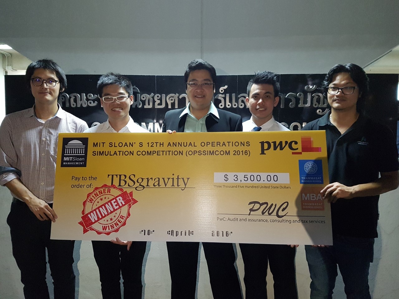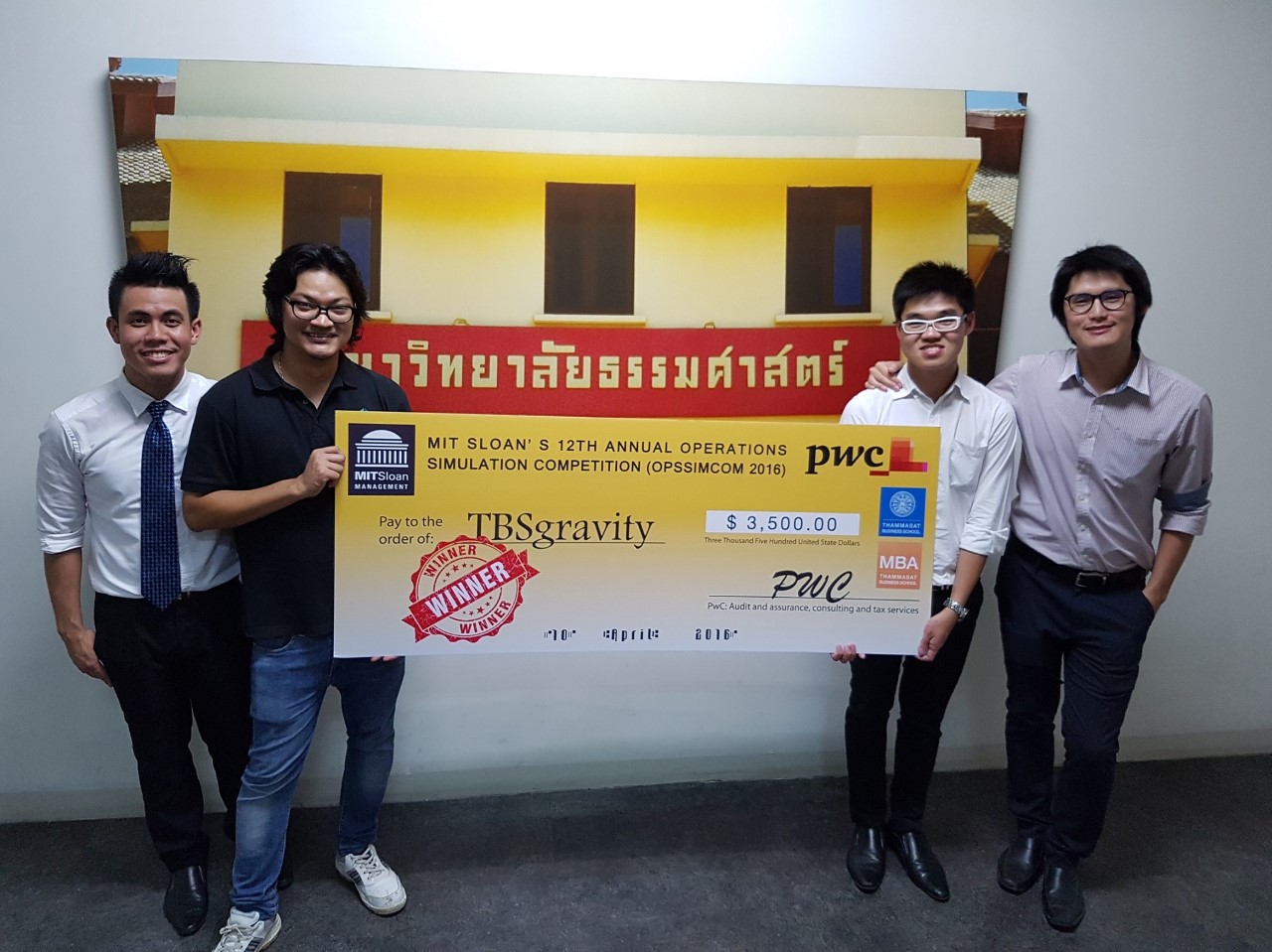 นักศึกษาปริญญาโท สาขาบริหารธุรกิจ (MBA)“ทีม TBSGravity” จากคณะพาณิชยศาสตร์และการบัญชีมหาวิทยาลัยธรรมศาสตร์ (มธ.) คว้ารางวัลชนะเลิศด้านการบริหารปฏิบัติการการแข่งขันบริหารโรงงานในเกมจำลองLittlefield Technology การบริหารกิจการเพื่อตอบสนองความต้องการลูกค้าที่มีความผันผวนสูง โดยอาศัยองค์ความรู้จากหลักสูตรบริหารธุรกิจในด้านต่าง ๆ อาทิ การพยากรณ์ยอดขาย การวางแผนกำลังการผลิต การจัดลำดับงาน การบริหารแถวคอย การจัดการสินค้าคงคลัง และตัดสินใจรับคำสั่งซื้อที่เหมาะสมที่สุดจากลูกค้าเพื่อให้ได้รายได้สูงที่สุด โดยทีม TBSGravity สามารถทำสถิติมีเงินสดสูงสุดจากการบริหารโรงงานในช่วงเวลาเพียง 72 ชั่วโมง แซงหน้าผู้เข้าแข่งขันจากมหาวิทยาลัยบริหารธุรกิจชั้นนำทั่วโลกทั้งสิ้น 198 ทีม อาทิ วิทยาลัยธุรกิจลอนดอน แห่งสหราชอาณาจักร มหาวิทยาลัยเทกซัสเอแอนด์เอ็ม สหรัฐอเมริกา มหาวิทยาลัยแคลิฟอร์เนีย เบิร์กลีย์ สหรัฐอเมริกา ฯลฯ ทั้งนี้ การแข่งขันบริหารระดับโลก MIT Sloan Operations Management Competition 2016 ครั้งที่ 12 (12thAnnual MIT Ops SimCom) จัดขึ้นเมื่อเร็ว ๆ นี้ โดยสถาบันศึกษาด้านการจัดการมหาวิทยาลัย MIT (Massachusetts Institute of Technology) ประเทศสหรัฐอเมริกา