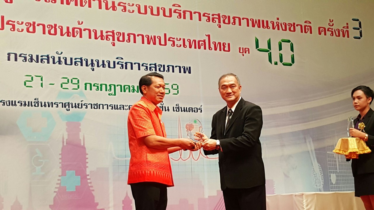 นาวาอากาศตรีนายแพทย์บุญเรือง ไตรเรืองวรวัฒน์ อธิบดีกรมสนับสนุนบริการสุขภาพ (กรม สบส.) กระทรวงสาธารณสุข มอบรางวัลเพื่อเป็นขวัญฉละกำลังใจในการดำเนินงานของบุคลากรสาธารณสุข ที่มีผลงานดีเด่นในการคุ้มครองผู้บริโภค ด้านระบบริการสุขภาพ ในการประชุมวิชาการ “การคุ้มครองผู้บริโภคด้านระบบบริการสุขภาพ” แห่งชาติ ครั้งที่ 3 ณ โรงแรมเซ็นทราศูนย์ราชการและคอนเวนชั่นเซ็นเตอร์ แจ้งวัฒนะ กรุงเทพมหานคร