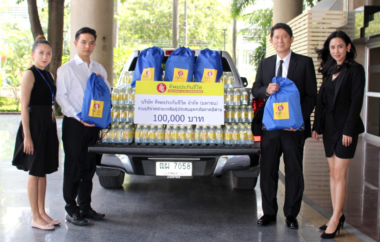 บริษัท ทิพยประกันชีวิต จำกัด (มหาชน) นำโดย นายนพพร บุญลาโภ กรรมการผู้จัดการใหญ่ (ลำดับที่ 2 จากขวา) มอบเงินจำนวน 100,000 บาท พร้อมน้ำดื่ม และถุงยังชีพ เพื่อช่วยเหลือผู้ประสบภัยน้ำท่วมจากอิทธิพลของพายุเซินกา ในจังหวัดสกลนครและจังหวัดใกล้เคียง ประชาชนที่ได้รับผลกระทบ ยังต้องการความช่วยเหลือ และการเยียวยาอีกจำนวนมาก โดยจะมีการลงพื้นที่ช่วยเหลืออย่างต่อเนื่องในวันที่ 3-12 สิงหาคม 2560