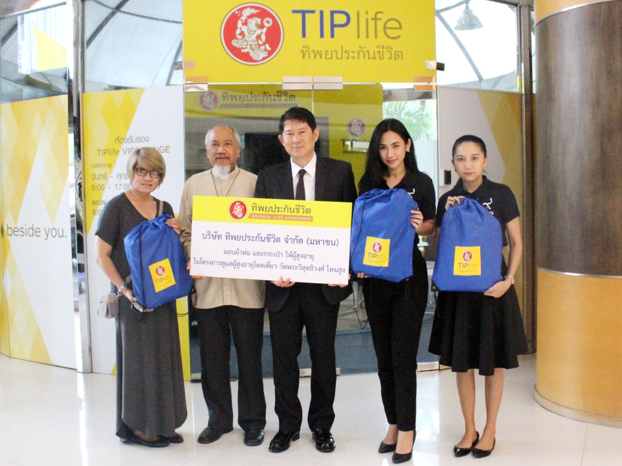 บริษัท ทิพยประกันชีวิต จำกัด (มหาชน) นำโดย นายนพพร บุญลาโภ กรรมการผู้จัดการใหญ่ (คนกลาง) มอบผ้าห่ม กระเป๋าเป้ และเครื่องใช้จำเป็น ให้แก่ บาทหลวง โดโรเทโอ บี.เรเยส,OMI เจ้าอาวาส วัดอัครเทวดามีคาแอล สะพานใหม่ (ลำดับที่ 2 จากซ้าย)เพื่อร่วมสนับสนุน โครงการ ฟื้นฟูชีวิตผู้สูงอายุโดดเดี่ยว วัดสุทธิวงศ์ (โพนสูง) ซึ่งเป็นโครงการดำเนินมาเป็นเวลา 7ปี ปัจจุบันมีผู้สูงวัยเป็นสมาชิกอยู่ จำนวน 70-80 ท่าน ณ สำนักงานใหญ่ บริษัท ทิพยประกันชีวิต จำกัด (มหาชน)