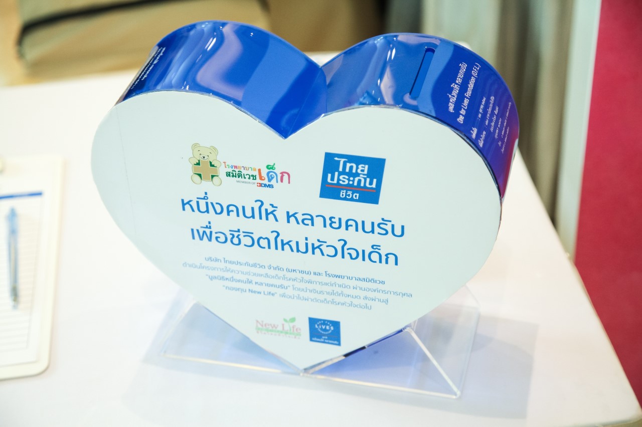 เพื่อมอบโอกาสการให้เพื่อชีวิตใหม่ บริษัท ไทยประกันชีวิต จำกัด (มหาชน) พร้อมด้วยมูลนิธิหนึ่งคนให้ หลายคนรับ และโรงพยาบาลเด็กสมิติเวช จึงร่วมกันลงนามบันทึกข้อตกลง (MOU) ดำเนินโครงการ “หนึ่งคนให้ หลายคนรับ เพื่อชีวิตใหม่หัวใจเด็ก” เพื่อจัดหารายได้มอบให้แก่กองทุนชีวิตใหม่ หรือ New Life สำหรับผ่าตัดผู้ป่วยเด็กที่เป็นโรคหัวใจพิการแต่กำเนิด แต่ขาดโอกาสทางการรักษา จำนวน 36 ราย โดยมีค่าใช้จ่ายในการผ่าตัดทั้งสิ้นจำนวน 7,200,000 บาท