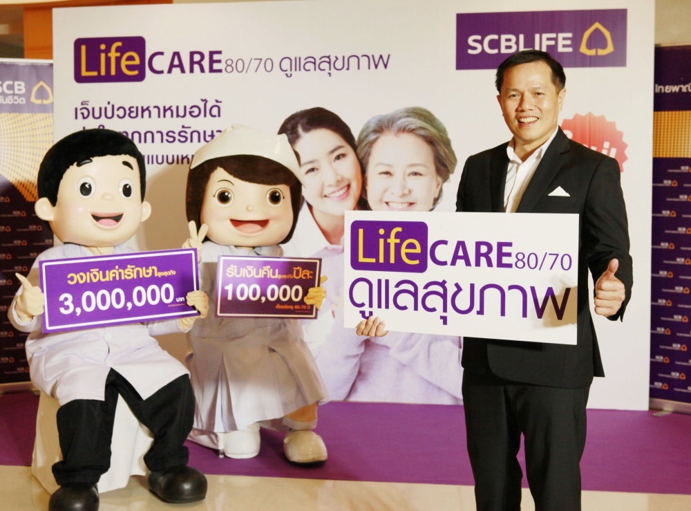 ด้วยนโยบาย “ยึดลูกค้าเป็นศูนย์กลาง” บริษัท ไทยพาณิชย์ประกันชีวิต จำกัด (มหาชน) หรือ SCBLIFE จึงมุ่งมั่นพัฒนาผลิตภัณฑ์ประกันชีวิตที่ตอบโจทย์ความต้องการของลูกค้าทุกกลุ่ม เพื่อสร้างหลักประกันทางการเงินอันมั่นคงให้แก่คนไทย และมุ่งสู่การสร้างสังคมประกันชีวิตที่ยั่งยืน บริษัทฯ ได้เห็นถึงความต้องการของลูกค้าด้านการเตรียมความพร้อมทางการเงิน เพื่อนำมาใช้ดูแลตัวเองในเรื่องสุขภาพ โดยเฉพาะค่าครองชีพที่สูงขึ้นเป็นเท่าตัว ซึ่งส่งผลให้ค่ารักษาพยาบาลสูงขึ้นตามมา จึงได้พัฒนาผลิตภัณฑ์ประกันชีวิตที่ตอบโจทย์ เพื่อช่วยให้ลูกค้าได้เตรียมเงินก้อนใหญ่ที่จะใช้สำหรับเป็นค่ารักษาพยาบาลหากเกิดความเจ็บป่วยในอนาคตผ่านแบบประกัน “Life Care 80/70 ดูแลสุขภาพ” ด้วยผลประโยชน์ค่ารักษาพยาบาลแบบเหมาจ่ายสูงสุดถึง ปีละ 3 ล้านบาท โดยจำหน่ายผ่านช่องทางตัวแทนของบริษัทฯ เพื่อให้สามารถเข้าถึงและให้บริการแก่ลูกค้าได้อย่างใกล้ชิด