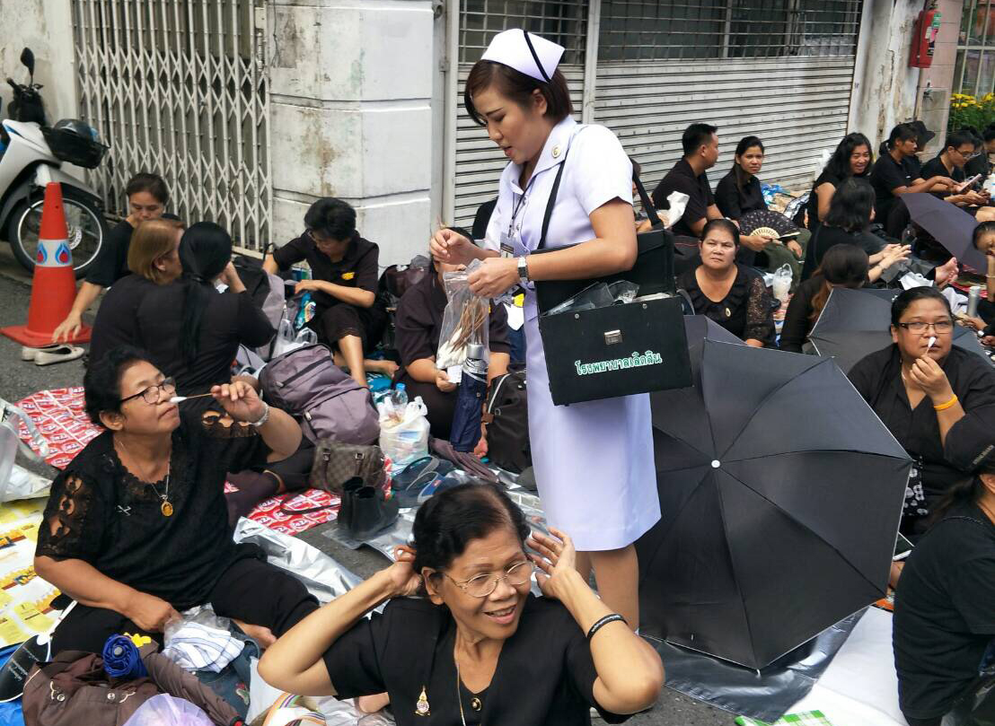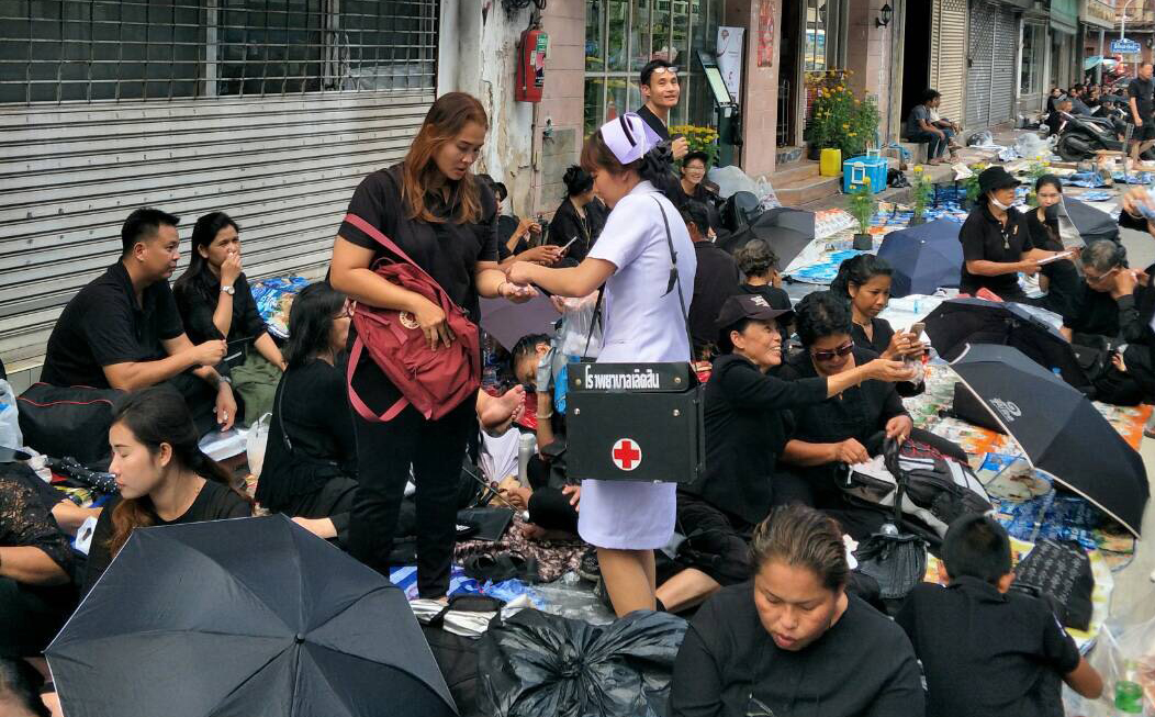 สำหรับในกรุงเทพมหานคร ขณะนี้ประชาชนเข้าไปอยู่ในมณฑลพิธีท้องสนามหลวง รอร่วมงานพระราชพิธีฯ รวมทั้งในจุดวางดอกไม้จันทน์ ในการดูแลสุขภาพประชาชนในระหว่างรองานพระราชพิธีฯ จากสภาพอากาศที่ร้อนสลับกับฝนตก อาจทำให้ประชาชนเสี่ยงเจ็บป่วยง่าย โดยเฉพาะผู้ป่วยโรคเรื้อรัง ผู้สูงอายุ เด็กเล็ก โดย 3 โรคที่พบได้บ่อยจากการประเมินของกรมควบคุมโรคคือไข้หวัด ท้องเสีย และลมแดด กระทรวงสาธารณสุขได้จัดทีมแพทย์เดินเท้าพร้อมยาและเวชภัณฑ์จำเป็น กระจายอยู่ทุกๆ 20 เมตร ทำงานเชิงรุกเข้าไปประเมินความเจ็บป่วย หากพบเจ็บป่วยเล็กน้อยจะให้ยาบรรเทาอาการเบื้องต้น หากอาการรุนแรงให้พามาพักที่จุดปฐมพยาบาล