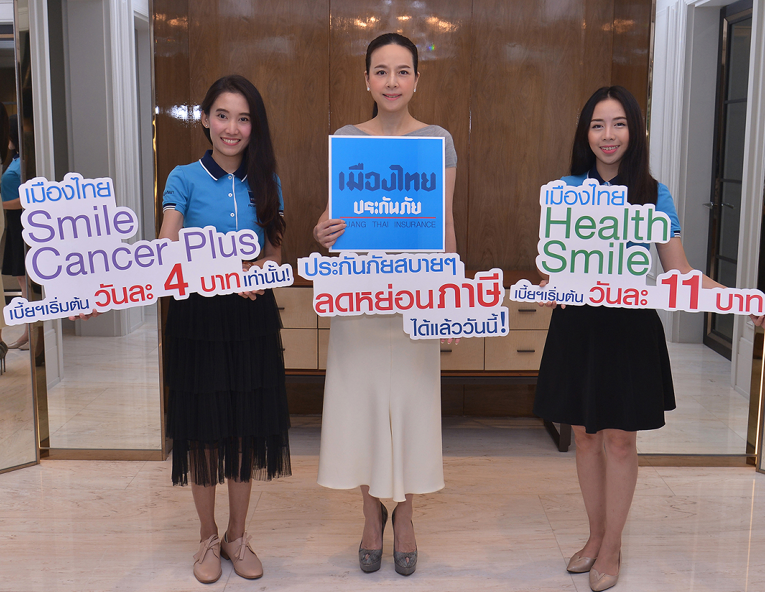 เพื่อเป็นหลักประกันในยามที่เจ็บป่วย และยังนำเบี้ยประกันภัยไปหักลดหย่อนภาษีประจำปีได้อีกด้วย บริษัทฯ จึงได้จัดทำผลิตภัณฑ์ที่เหมาะสมและตรงต่อความต้องการของลูกค้า อาทิ เมืองไทย Health Smile ประกันสุขภาพที่มีเบี้ยประกันภัยเฉลี่ยเริ่มต้นเพียงวันละ 11 บาท คุ้มครองสูงสุดถึง 800,000 บาท รวมถึงค่ารักษาพยาบาลกรณีผู้ป่วยในทั้งจากอุบัติเหตุและเจ็บป่วย ค่าห้อง ค่าอาหาร และค่ายา รวมถึงค่ารักษาพยาบาลแบบจ่ายตามจริง "เพราะสุขภาพที่ดี ไม่ได้มีกันทุกคน จึงต้องมีหลักประกันที่มั่นใจด้วยแผนประกันสุขภาพเมืองไทยประกันภัย” (รายละเอียดเป็นไปตามเงื่อนไขในกรมธรรม์) นอกจากนี้ยังมีผลิตภัณฑ์ใหม่ เมืองไทย Smile Cancer Plus ประกันโรคมะเร็ง ที่มีเบี้ยประกันภัยเฉลี่ยเริ่มต้นเพียงวันละ 4 บาท ให้คุ้มครองสูงสูงสุดถึง 960,000 บาท จุดเด่นของแผนประกันภัยนี้ ลูกค้าจะได้รับทุนประกันเพิ่มขึ้นเมื่อต่ออายุกรมธรรม์ รวมถึงวงเงินเพิ่มเติมเพื่อบรรเทาภาระค่าใช้จ่ายในการรักษาโรคมะเร็ง (รายละเอียดเป็นไปตามเงื่อนไขในกรมธรรม์) ซึ่งสามารถนำเบี้ยประกันภัยไปหักลดหย่อนภาษีได้เช่นกัน