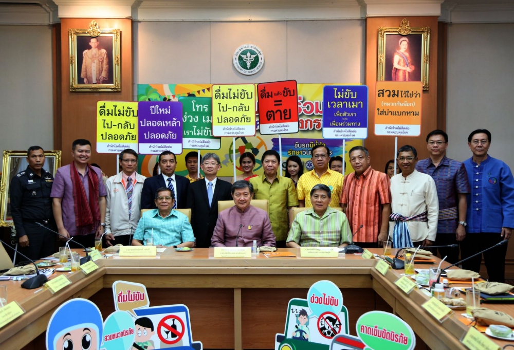 วันนี้ (4 เมษายน 2561) ที่กระทรวงสาธารณสุข จ.นนทบุรี ศ.คลินิก เกียรติคุณ นพ.ปิยะสกล สกลสัตยาทร รัฐมนตรีว่าการกระทรวงสาธารณสุข พร้อมด้วยนพ.เจษฎา โชคดำรงสุข ปลัดกระทรวงสาธารณสุข พลตำรวจตรีธนชาติ รอดคลองตัน ผู้บังคับการกองแผนงานกิจการพิเศษสำนักงานตำรวจแห่งชาติ นพ.สุวรรณชัย วัฒนายิ่งเจริญชัย อธิบดีกรมควบคุมโรค นพ.วชิระ เพ็งจันทร์ อธิบดีกรมอนามัย นพ.เกียรติภูมิ วงศ์รจิต อธิบดีกรมการแพทย์แผนไทยและการแพทย์ทางเลือก เรืออากาศเอก นพ.อัจฉริยะ แพงมา เลขาธิการสถาบันการแพทย์ฉุกเฉินแห่งชาติ ทพ.ศิริเกียรติ เหลียงกอบกิจ รักษาการผู้ช่วยผู้จัดการกองทุนสนับสนุนการสร้างเสริมสุขภาพ (สสส.) และนายจุมพฏ วรรณฉัตรสิริ ผอ.กองบูรณาการความปลอดภัยทางถนน กรมป้องกันและบรรเทาสาธารณภัย แถลงข่าว “ร่วมมือร่วมใจ สุขใจเทศกาลสงกรานต์” ระหว่างวันที่ 11-17 เมษายน 2561