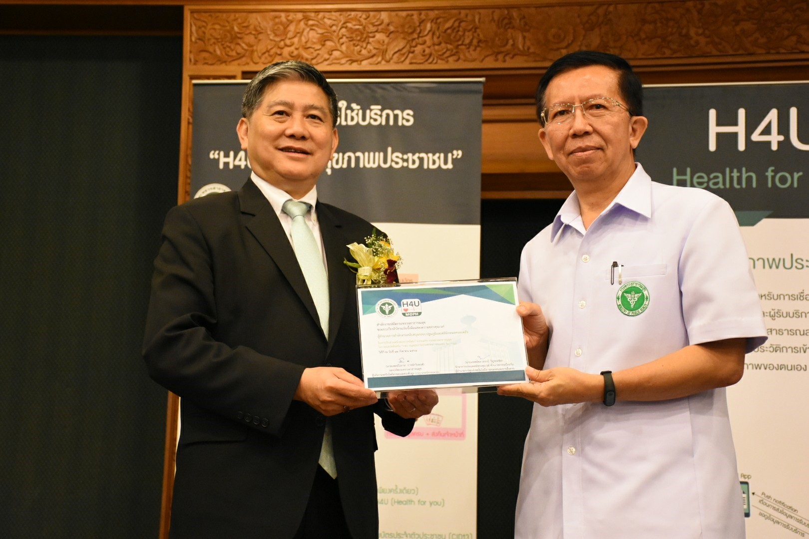 นอกจากนี้ ภายในงานได้มีการมอบเกียรติบัตรให้แก่หน่วยงานที่ผลักดันให้เกิดแอปพลิเคชัน H4U และมอบป้าย H4U Ready ให้แก่โรงพยาบาลที่เข้าร่วมโครงการ เพื่อติดประชาสัมพันธ์ให้ประชาชนได้ทราบว่า โรงพยาบาลพร้อมแล้วที่จะให้ประชาชนได้ใช้ข้อมูลสุขภาพส่วนบุคคลผ่าน H4U