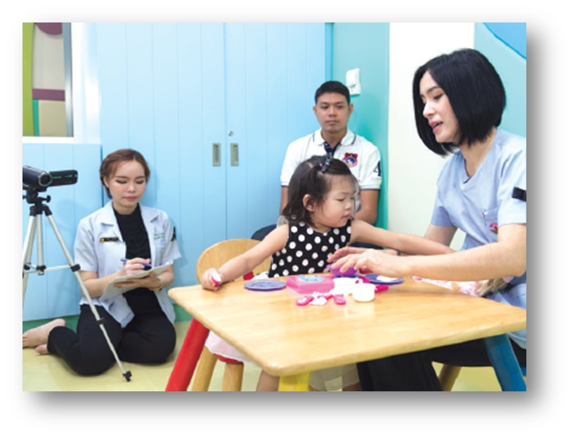 ทางด้านแพทย์หญิงดวงกมล ตั้งวิริยะไพบูลย์ กุมารแพทย์เชี่ยวชาญประจำสถาบันพัฒนาการเด็กฯกล่าวว่า โครงการวิจัยฯนี้ดำเนินการระหว่างพ.ศ.2559-2561ได้รับการสนับสนุนงบประมาณจากสถาบันวิจัยระบบสาธารณสุขและสำนักงานคณะกรรมการวิจัยแห่งชาติ ชุดเครื่องมือตรวจวินิจฉัย จะมีชุดอุปกรณ์ของเล่นกระตุ้นประสาทสัมผัสของเด็กซึ่งได้จากการวิจัยทั้งหมด 12 รายการ ได้แก่รถยนต์ ลูกบอล หุ่นรูปสัตว์ บล็อกไม้ โทรศัพท์ของเล่น ตุ๊กตาเด็ก ของเล่นเสริมทักษะพัฒนาการ 5 ด้านคือการใช้กล้ามเนื้อมัดเล็กหยิบจับ พัฒนาการภาษา การมอง การใช้มือและการได้ยิน พัดลมตั้งโต้ะจิ๋ว กล่องใส ชุดเป่าฟองสบู่ ชุดเครื่องครัวและอาหารจำลอง และผ้าสี่เหลี่ยม รวม 47 ชิ้น ใช้ต้นทุนผลิต 10,500 บาท การใช้จะต้องใช้ 2 ส่วนประกอบกันคือ1.การสัมภาษณ์ผู้ปกครองครอบคลุมทั้งด้านความบกพร่องในการสื่อสารปฏิสัมพันธ์ทางสังคมของเด็กในหลายๆสถานการณ์ และด้านพฤติกรรมความสนใจของเด็ก และ2.การสังเกตพฤติกรรม โดยบุคลากรจะสังเกตเด็กขณะเล่นชุดเครื่องมือใน 6 กิจกรรมทดสอบ ได้แก่ 1. กิจกรรมการเล่นอิสระ 2. กิจกรรมการเรียกชื่อ 3.กิจกรรมเก็บของเล่นใส่กล่อง 4.กิจกรรมเป่าฟองสบู่ 5. กิจกรรมทำอาหาร 6.กิจกรรมจ้ะเอ๋ และปูไต่ ใช้เวลาประมาณ 45 นาที