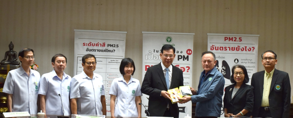 นายแพทย์สุขุม กาญจนพิมาย ปลัดกระทรวงสาธารณสุข พร้อมด้วยแพทย์หญิงอัมพร เบญจพล รองอธิบดีกรมอนามัยและโฆษกกระทรวงสาธารณสุข และนายแพทย์ชัยพร พรมสิงห์ นายแพทย์ทรงคุณวุฒิ ร่วมประชุมมาตรการสำคัญในการดำเนินงานด้านการแพทย์และสาธารณสุขเพื่อลดและป้องกันผลกระทบต่อสุขภาพจากฝุ่นละอองขนาดไม่เกิน 2.5 ไมครอน (PM 2.5) ในพื้นที่ปริมณฑล ร่วมกับหน่วยงานในสังกัดเขตปริมณฑล 5 จังหวัด ได้แก่ สำนักงานสาธารณสุขจังหวัดสมุทรปราการ สมุทรสาคร นครปฐม ปทุมธานี นนทบุรี ศูนย์อนามัยที่ 4 สระบุรี ศูนย์อนามัยที่ 5 ราชบุรี ศูนย์อนามัยที่ 6 ชลบุรี สำนักงานป้องกันควบคุมโรคที่ 4 สระบุรี สำนักงานป้องกันควบคุมโรคที่ 5 ราชบุรี สำนักงานป้องกันควบคุมโรคที่ 6 ชลบุรี ใช้มาตรการกระทรวงสาธารณสุขในการบูรณาการแผนดำเนินงานในแต่ละพื้นที่ให้เป็นไปในทิศทางเดียวกัน