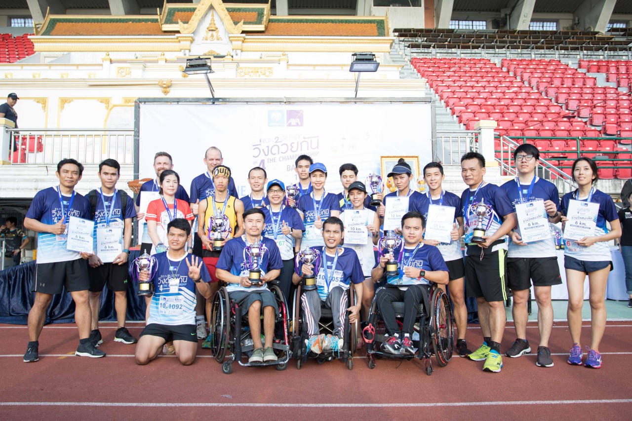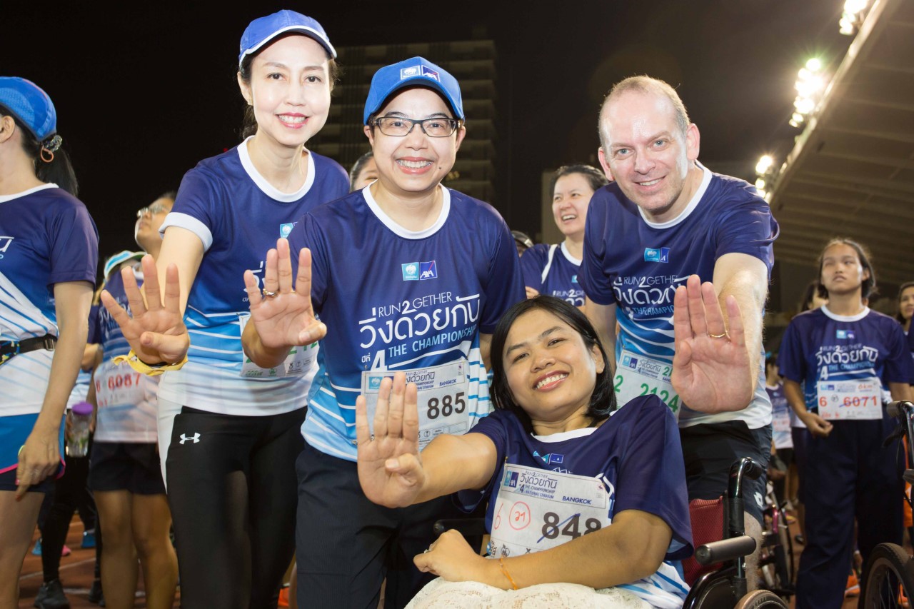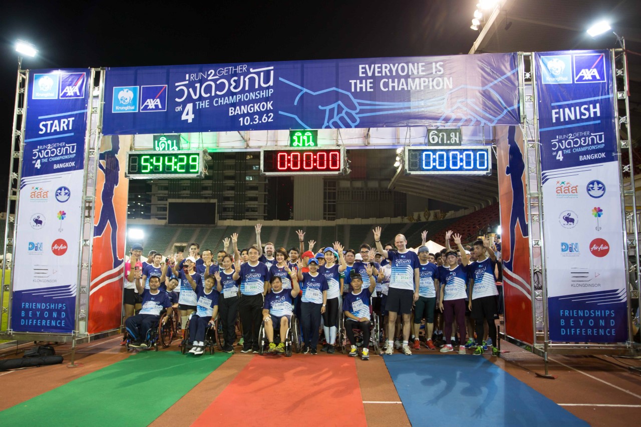 บริษัท กรุงไทย-แอกซ่า ประกันชีวิต จำกัด(มหาชน)ในฐานะผู้สนับสนุนหลักได้จับมือร่วมกับพันธมิตรหลายภาคส่วน ได้แก่ สำนักงานกองทุนสนับสนุนการสร้างเสริมสุขภาพ(สสส.)สมาคมกีฬาคนตาบอดแห่งประเทศไทย กระทรวงการท่องเที่ยวและกีฬา บริษัท กล่องดินสอ จำกัด และบริษัท ชูใจกะกัลยาณมิตร ร่วมจัดงาน“วิ่งด้วยกัน”ครั้งที่4 The Championship ชิงถ้วยพระราชทานสมเด็จพระเทพรัตนราชสุดาฯสยามบรมราชกุมารี เพื่อเปิดโอกาสให้คนพิการและคนไม่พิการได้ออกมาวิ่ง เพื่อเสริมสร้างสุขภาพที่ดีก้าวข้ามข้อจำกัดและความแตกต่างทางด้านร่างกายด้วยการเติมเต็มกันและกันของคู่นักวิ่งที่จะก้าวเข้าสู่เส้นชัยร่วมกัน ซึ่งเป็นการวิ่งที่ไม่หวังผลแพ้ชนะ แต่เป็นการวิ่งเพื่อความเท่าเทียมกันของทุกคนในสังคม ซึ่งกิจกรรมนี้ได้จัดขึ้นเมื่อวันที่10 มีนาคม ที่ผ่านมา ณ สนามกีฬาแห่งชาติ สนามศุภชลาศัย โดยมีคนพิการและไม่พิการร่วมวิ่งด้วยกันกว่า 1,800 คน