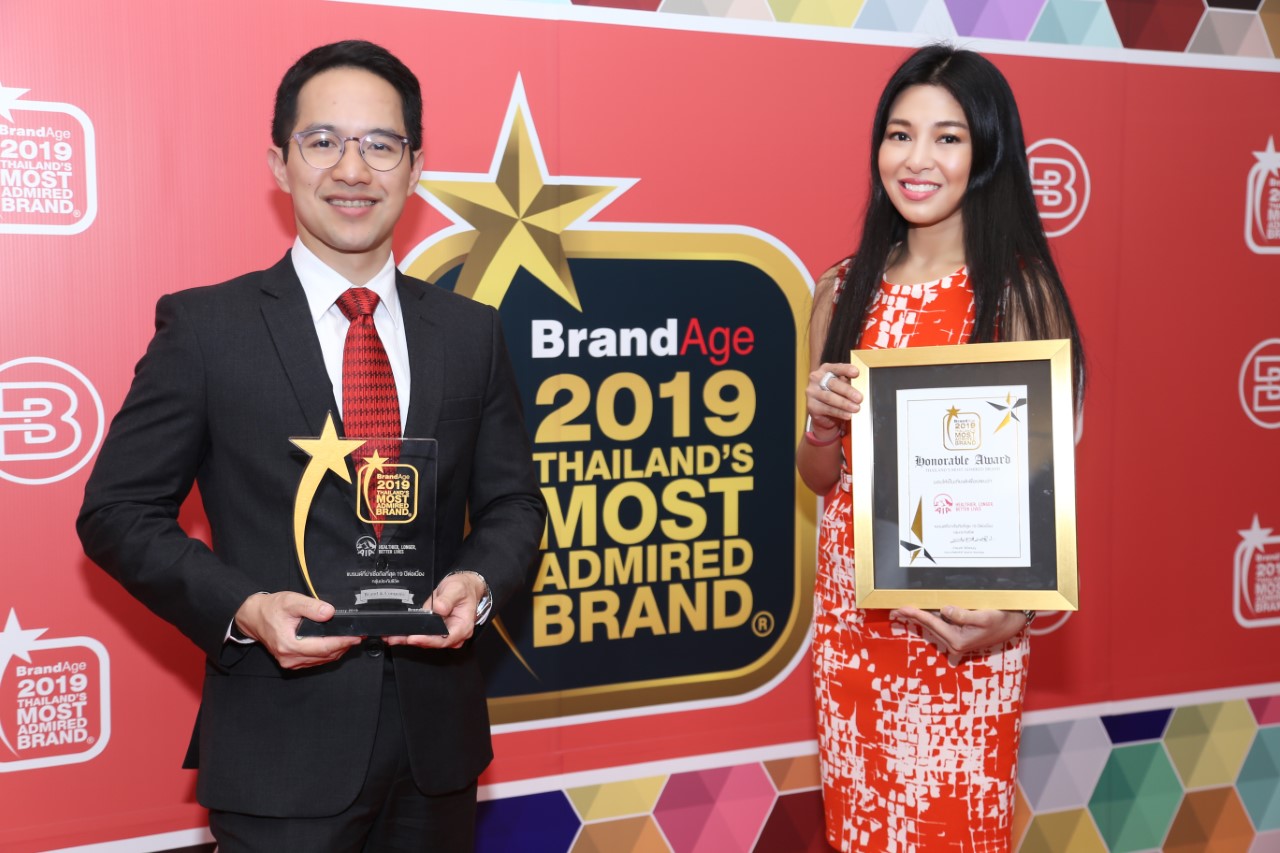 เอไอเอ ประเทศไทย นำโดยนายเอกรัตน์ ฐิติมั่น ประธานเจ้าหน้าที่ฝ่ายการตลาด และนางสาวรพีพร วงศ์ทองคำ ผู้อำนวยการฝ่ายสื่อสารองค์กรและภาพลักษณ์ เป็นตัวแทนรับรางวัลเกียรติยศ“Thailand’s Most Admired Brand and Company 2019”ในหมวดธุรกิจประกันชีวิตที่มีความน่าเชื่อถือที่สุดติดต่อกันอย่างต่อเนื่องเป็นปีที่19 ในงาน Thailand’s Most Admired Brand & Why We Buy 2019 ซึ่งนิตยสาร BrandAgeได้ร่วมกับสถาบันการศึกษาชั้นนำของประเทศ จัดทำการสำรวจวิจัยกับกลุ่มผู้บริโภคทั่วประเทศ เพื่อค้นหาแบรนด์และองค์กรที่ได้รับความไว้วางใจจากผู้บริโภคมากที่สุด