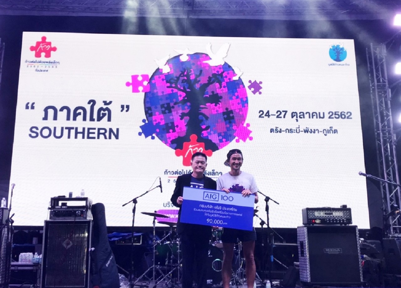 กลุ่มบริษัทเอไอจี ประเทศไทย ผู้นำด้านธุรกิจประกันวินาศภัยระดับโลก โดย นายเมธาสิทธิ์ อนันต์ศิริภัณฑ์ ผู้จัดการสาขาภูเก็ตและผู้จัดการภาคใต้ เป็นตัวแทนมอบเงินจำนวน 90,000 บาท ให้กับ “มูลนิธิก้าวคนละก้าว” เพื่อนำไปจัดซื้ออุปกรณ์ทางการแพทย์ให้กับโรงพยาบาลต่างๆโดยมี นายอาทิวราห์ คงมาลัย หรือ ตูน บอดี้สแลม เป็นผู้รับมอบ ในงานวิ่งการกุศล ก้าวต่อไปด้วยพลังเล็กๆ ณ ซาน่าบีชคลับ หาดบางเทา อ.ถลาง จ.ภูเก็ต เมื่อเร็วๆ นี้