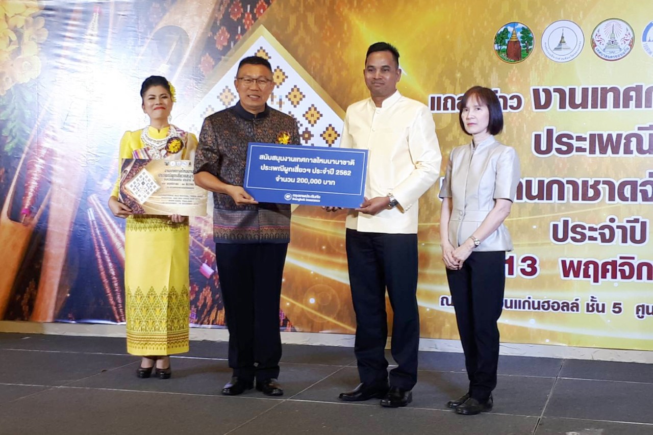 บริษัท กรุงเทพประกันภัย จำกัด (มหาชน) หรือ BKI โดยนายทวี ขวัญทอง (ที่ 2 จากขวา) ผู้จัดการภาคตะวันออกเฉียงเหนือ ธุรกิจสาขาและการร่วมทุน เป็นผู้แทนบริษัทฯ มอบเงินสนับสนุนการจัดงานเทศกาลไหมนานาชาติ ประเพณีผูกเสี่ยวฯ ประจำปี 2562 จำนวน 200,000 บาท เพื่อสืบสานอนุรักษ์ศิลปวัฒนธรรมอันดีงามของจังหวัดขอนแก่นและภาคอีสาน ได้แก่ ประเพณีผูกเสี่ยว การแสดงศิลปวัฒนธรรมพื้นบ้าน เพื่อส่งเสริมสนับสนุนการท่องเที่ยวของจังหวัดขอนแก่น โดยมีนายสมศักดิ์ จังตระกุล ผู้ว่าราชการจังหวัดขอนแก่นเป็นผู้รับมอบ ณ ศูนย์การค้าเซ็นทรัลพลาซ่าขอนแก่น อ.เมือง จ.ขอนแก่น เมื่อเร็วๆนี้