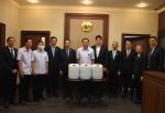 นอกจากนี้ในวันนี้ นายพิพัฒน์ รัชกิจประการ รัฐมนตรีว่าการกระทรวงการท่องเที่ยวและกีฬา ได้นำผู้บริหารบริษัทคอสโม กรุ๊ป จำกัด (มหาชน) มามอบแอลกอฮอล์ 75 เปอร์เซ็นต์ จำนวน 30,000 ลิตร เพื่อให้โรงพยาบาลนำไปใช้ในการทำความสะอาดพื้นผิวสถานที่ต่าง ๆ ซึ่งมีความต้องการใช้เป็นจำนวนมาก