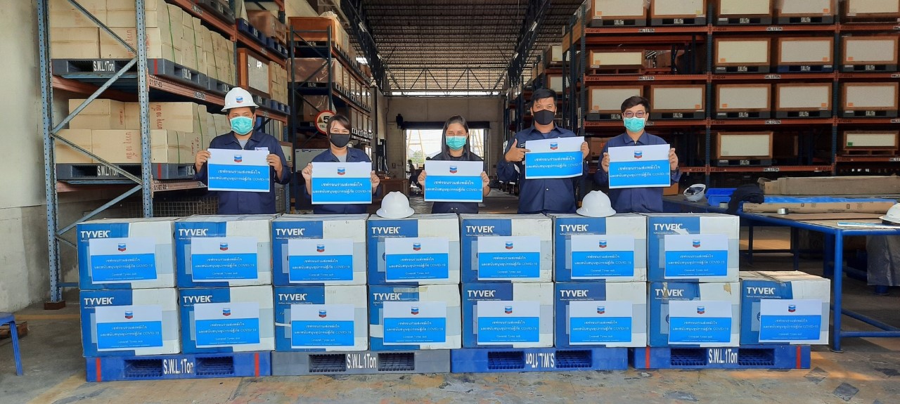 เมื่อเร็วๆนี้ บริษัท เชฟรอนประเทศไทยสำรวจและผลิต จำกัด มอบหน้ากาก N88 ชุดป้องกันสารเคมี อุปกรณ์ป้องกันระบบหายใจ (PAPR) รวมมูลค่ากว่า 1 ล้านบาท เพื่อสนับสนุนการปฏิบัติงานของบุคลากรทางการแพทย์ ในการรับมือกับสถานการณ์แพร่ระบาดของไวรัสโควิด-19 |