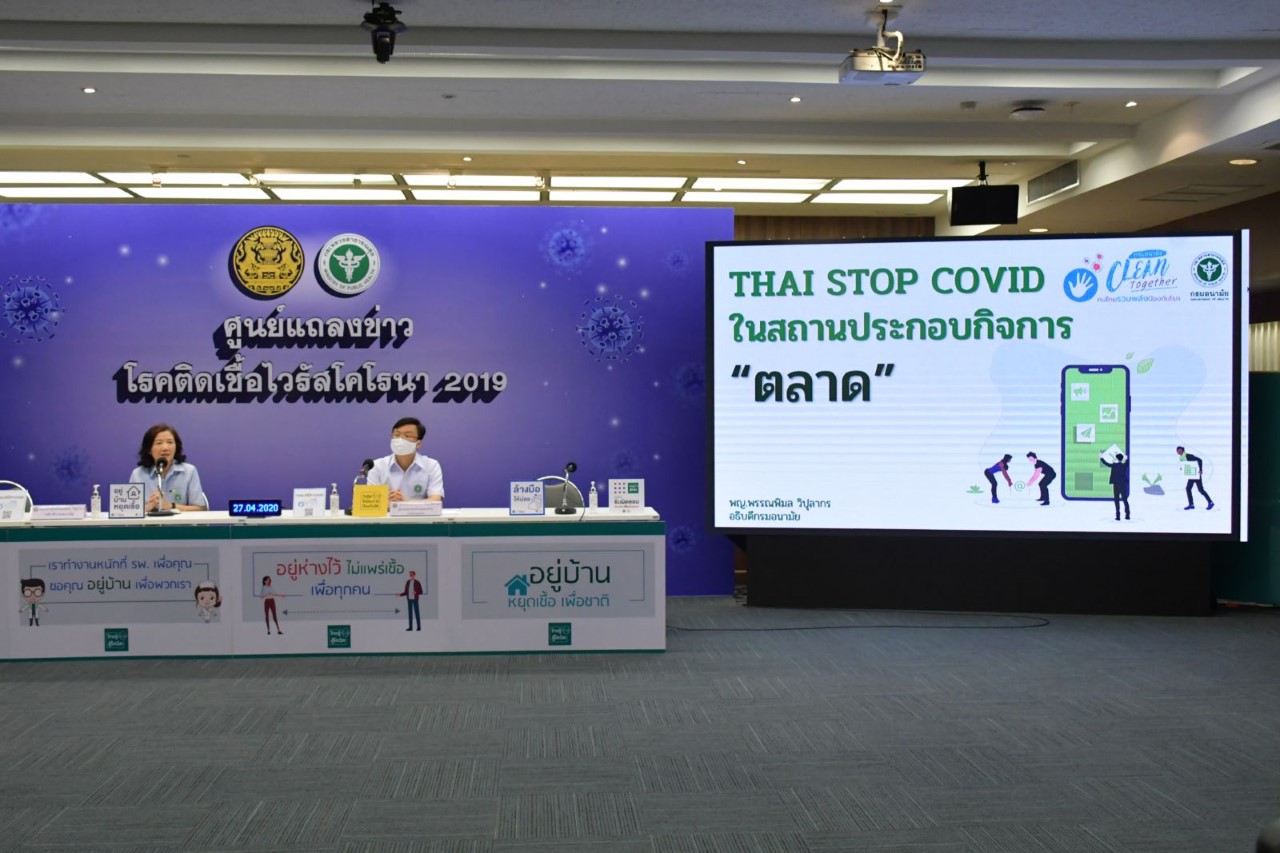 ทั้งนี้กรมอนามัยได้จัดทำ Application Stopcovid-19 (http://stopcovid.anamai.moph.go.th) โดยให้ผู้ประกอบการตลาดที่ปฏิบัติตามมาตรฐานประเมินตนเองและปักหมุดร้าน ส่วนผู้บริโภคสามารถตรวจสอบเลือกการใช้บริการ และร้องเรียนเสนอแนะผ่านช่องทางเดียวกันได้ รวมทั้งจากการสำรวจ Thaistopcovid ในตลาดจำนวน 342 แห่ง ล่าสุดเมื่อวันที่ 22 เมษายน 2563 พบว่า มีการปฏิบัติตามมาตรการ Social Distancing ระหว่างผู้ขายของกับผู้บริโภคร้อยละ 88.99, พ่อค้า แม่ค้า พนักงานตลาด และผู้บริโภคได้ให้ความร่วมมือสวมหน้ากากอนามัยหรือหน้ากากผ้าร้อยละ 98.84,จัดให้มีจุดบริการล้างมือด้วยสบู่และน้ำสะอาดหรือเจลแอลกอฮอล์ ร้อยละ 96.81 และมีการทำความสะอาดแผง โต๊ะจำหน่ายอาหารด้วยน้ำยาทำความสะอาดและน้ำยาฆ่าเชื้อทุกวัน ร้อยละ 95.65