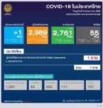 วันนี้มีผู้ป่วยเพิ่ม 1 ราย ที่เพิ่งเดินทางกลับมาจากประเทศรัสเซีย ส่วนรักษาหายเพิ่ม 14 ราย รวมกลับบ้านแล้ว 2,761 ราย ยังรักษาตัวในโรงพยาบาล 173 ราย มีผู้เสียชีวิตเพิ่ม 1 ศพ รวมยอดผู้เสียชีวิต 55 ศพ ขณะที่ยอดผู้ป่วยยืนยันสะสมอยู่ที่ 2,989
