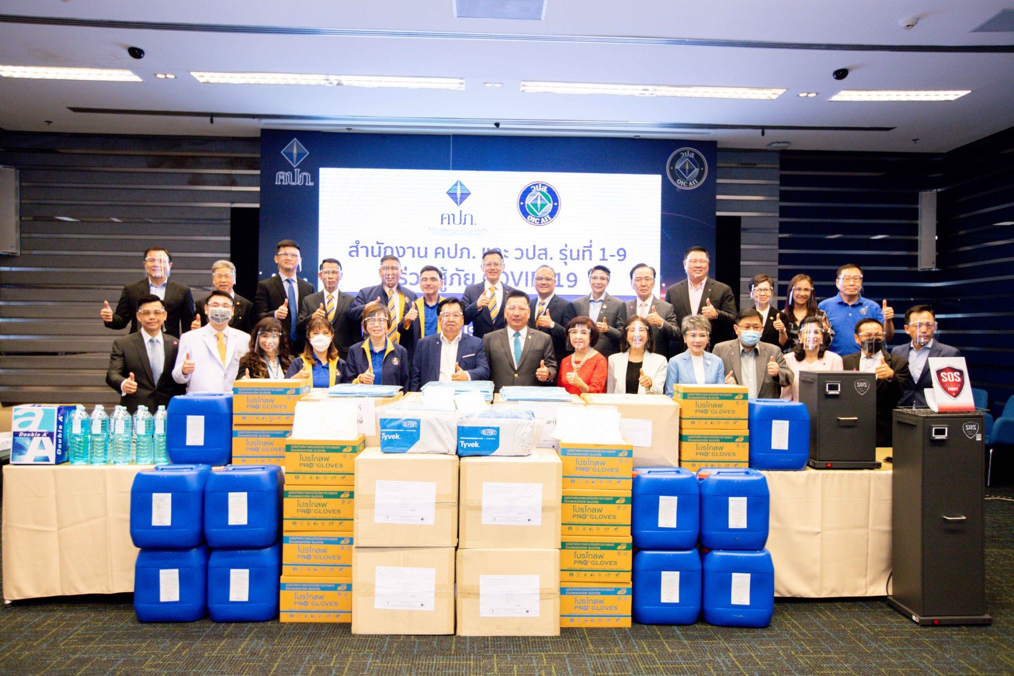 “สำนักงาน คปภ. ขอขอบคุณบุคลากรทางการแพทย์ทุกคนที่ทุ่มเทสรรพกำลังในการดูแลพี่น้องประชาชน ทั่วประเทศ รวมถึงครอบครัวของผู้ปฏิบัติงานที่เสียสละอย่างยิ่งในสถานการณ์การแพร่ระบาดของไวรัสโควิด-19 และขอขอบคุณศิษย์เก่าหลักสูตรวิทยาการประกันภัยระดับสูง (วปส.) รุ่น 1–9 กลุ่ม SOS to Medical Staff in COVID-19 บริษัท ไทยเบฟเวอเรจ จำกัด (มหาชน) และบริษัท ดั๊บเบิ้ล เอ (1991) จำกัด (มหาชน) ที่ร่วมแรงร่วมใจบริจาคเงินเพื่อสนับสนุนเครื่องมือและอุปกรณ์ที่มีความจำเป็นและเป็นประโยชน์อย่างยิ่งต่อการปฏิบัติงานของบุคลากรทางการแพทย์ในสถานการณ์ปัจจุบัน เพื่อให้ทุกคนก้าวผ่านวิกฤตการณ์โควิด-19 ไปด้วยกัน” เลขาธิการ คปภ. กล่าวในตอนท้าย