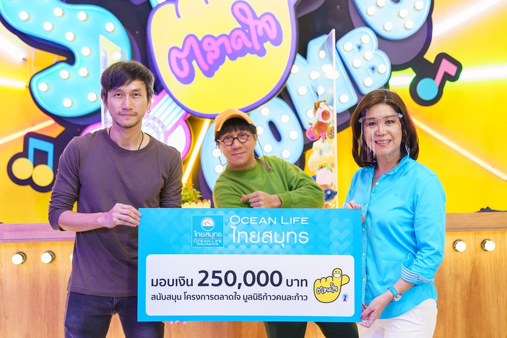 บมจ.ไทยสมุทรประกันชีวิต รักคือพลังของชีวิต โดยคุณนุสรา (อัสสกุล) บัญญัติปิยพจน์ กรรมการผู้จัดการ ส่งมอบพลังความรักร่วมเป็นอีกก้าวหนึ่งที่จะนำพาคนไทยให้ผ่านพ้นวิกฤต ด้วยการร่วมสนับสนุน “ตลาดใจ String Combo” จัดโดยมูลนิธิก้าวคนละก้าว มอบเงิน 250,000 บาท ให้แก่ คุณตูน อาทิวราห์ คงมาลัย และคุณโน๊ต อุดม แต้พานิช เพื่อนำไปจัดซื้ออุปกรณ์สำหรับบุคลากรทางการแพทย์ได้ใช้ในสถานการณ์ COVID-19 โดยงานดังกล่าวเป็นงานบันเทิงมหากุศลที่รวมศิลปินทั่วฟ้าเมืองไทยร่วม LIVE สด สร้างความสนุกส่งให้คนไทยผ่านหน้าจอกันแบบฟรี ๆ และยังเปิดให้ประชาชนได้ร่วมทำบุญครั้งใหญ่นี้ด้วยกัน นอกจากนี้ OCEAN LIFE ไทยสมุทร ยังมีกิจกรรมแจกเสื้อตลาดใจให้กับผู้ร่วมบริจาคอีกด้วย
