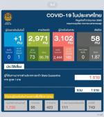 นายแพทย์ทวีศิลป์ วิษณุโยธิน โฆษกศูนย์บริหารสถานการณ์โควิด-19 (ศบค.) เปิดเผยว่า สถานการณ์ผู้ป่วยโรคโควิด-19 ในวันนี้ (5 มิ.ย.63) พบว่า มีผู้ป่วยติดเชื้อ 1 คน ซึ่งกลับจากประเทศคูเวต และอยู่ใน State Quarantine ทำให้ยอดสะสมอยู่ที่ 3,102 คน รักษาหายเพิ่ม 3 คน รวมรักษาหายแล้ว 2,971 คน และไม่มีผู้เสียชีวิตเพิ่ม รวมเสียชีวิตสะสมอยู่ที่ 58 คน มีผู้ป่วยที่อยู่ระหว่างการรักษาอยู่ที่ 73 คน