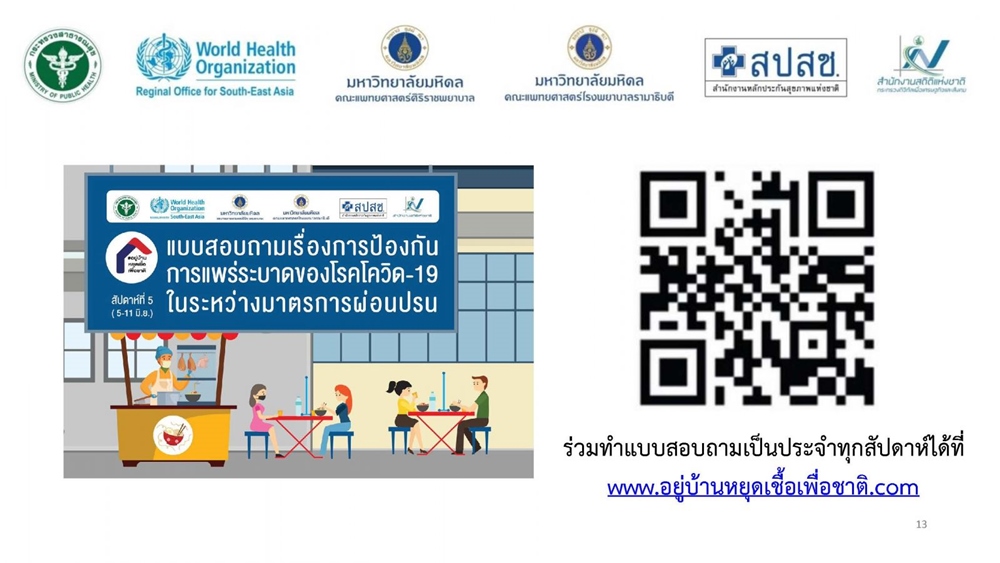 จากผลสำรวจแสดงให้เห็นว่า ประชาชนยังปฏิบัติตามมาตรการป้องกันตนเองได้ดีพอควร แต่ขอให้ปฏิบัติเพิ่มขึ้นทั้งการสวมหน้ากาก 100 เปอร์เซ็นต์ ล้างมือบ่อยๆ รักษาระยะห่าง รวมทั้งช่วยกันปรับปรุงการปฏิบัติตามมาตรการป้องกันโรคในสถานที่ต่าง ๆ และขอเชิญร่วมตอบแบบสอบถามและติดตามผลการสำรวจฯ ที่ www.อยู่บ้านหยุดเชื้อเพื่อชาติ.com