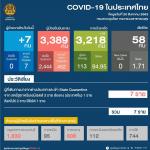 รายงานจากศูนย์บริหารสถานการณ์โควิด-19 (ศบค.) เปิดเผยว่า สถานการณ์การติดเชื้อโควิด-19 ในวันนี้ (20 ส.ค.63) มีผู้ป่วยรายใหม่เพิ่ม 7 คน ทำให้ผู้ป่วยยืนยันสะสมอยู่ที่ 3,389 คน เป็นผู้ติดเชื้อในประเทศ 2,444 คน และจากสถานกักกันที่รัฐจัดให้ 452 คน มีผู้ป่วยรักษาหายเพิ่ม 19 คน รวมหายป่วยสะสม 3,218 คน อยู่ระหว่างการรักษา 113 คน และเสียชีวิตคงเดิมที่ 58 คน