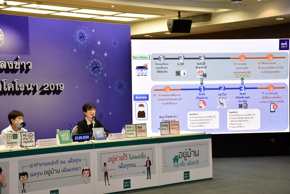วันนี้ (23 กันยายน 2563) ที่ศูนย์ปฏิบัติการด้านข่าวโรคติดเชื้อไวรัสโคโรนา 2019 กระทรวงสาธารณสุข จ.นนทบุรี พญ.ศศิธร ตั้งสวัสดิ์ ผู้อำนวยการกองสำนักโรคไม่ติดต่อ แถลงข่าว “แพลตฟอร์มไทยชนะ” ว่า ภาครัฐได้นำแพลตฟอร์มไทยชนะมาใช้เป็นเครื่องมือในการป้องกันและลดความเสี่ยงในการแพร่กระจายโรคโควิด 19 ตั้งแต่ประมาณเดือนพฤษภาคม 2563 เพื่อให้การปฏิบัติตามมาตรการผ่อนคลายเป็นไปอย่างมีประสิทธิภาพ โดยให้ร้านค้า/สถานประกอบการปฏิบัติตามมาตรการหลักในการป้องกันโรคคือ การสวมหน้ากากอนามัย ล้างมือ ดูแลความสะอาด การเว้นระยะห่าง โดยให้ประชาชนประเมินการปฏิบัติของผู้ประกอบการ โดยข้อมูลจะส่งต่อให้ศูนย์ปฏิบัติการจังหวัด/อำเภอ ใช้ในการวางแผนการตรวจประเมินและให้คำแนะนำร้านค้า เจ้าหน้าที่สามารถบันทึกผลออนไลน์ สะดวกในการวิเคราะห์และรายงานผล นอกจากนี้ การลงทะเบียนในแพลตฟอร์มจะมีประโยชน์ในการสอบสวนโรคเมื่อมีผู้ที่ติดเชื้อในสถานที่นั้นๆ จะสามารถตรวจสอบว่าหาผู้ที่มีความเสี่ยงเข้าข่ายการสืบสวนโรคจากข้อมูลการเช็คอิน - เช็คเอาท์ จำกัดเป้าหมายให้แคบลง ทำให้การสอบสวนโรคทำได้อย่างถูกต้อง รวดเร็ว