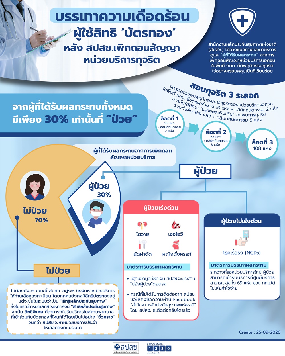 สปสช.เขต 13 กทม. ร่อนหนังสือแจ้งโรงพยาบาล คลินิก ศูนย์บริการสาธารณสุข ย้ำประชาชนที่ได้รับผลกระทบจากการยกเลิกสัญญาหน่วยบริการ สามารถเข้ารับการรักษาได้ทุกที่ โดยหน่วยบริการสามารถเบิกค่าใช้จ่ายได้ตามระบบที่กำหนด พร้อมให้ผู้ที่ลงทะเบียนเลือกหน่วยบริการประจำใหม่ไปแล้ว แต่อยู่ไกลเดินทางไม่สะดวก สามารถเข้ารับบริการได้ทุกแห่ง