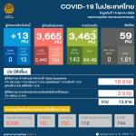 สำหรับผู้ป่วยใหม่ 13 คน เป็นผู้เดินทางมาจากต่างประเทศ และเข้าพัก State Quarantine โดยมาจากเลบานอน 1 คน เมียนมา 3 คน เนเธอร์แลนด์ 1 คน อิตาลี 1 คน ซูดานใต้ 3 คน และเอธิโอเปีย 1 คน