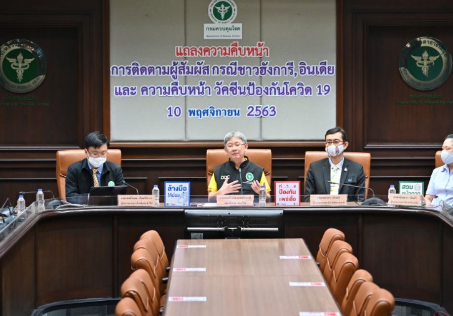 วันนี้ (10 พฤศจิกายน 2563) ที่กรมควบคุมโรค จ.นนทบุรี นายแพทย์โอภาส การย์กวินพงศ์ รักษาราชการอธิบดีกรมควบคุมโรค พร้อมด้วย นายแพทย์โสภณ เอี่ยมศิริถาวร ผู้อำนวยการกองโรคติดต่อทั่วไป และนายแพทย์นคร เปรมศรี ผู้อำนวยการสถาบันวัคซีนแห่งชาติ ร่วมกันแถลงข่าวความคืบหน้าการติดตามผู้สัมผัสกรณีอินเดียและฮังการี รวมถึงวัคซีนโควิด 19