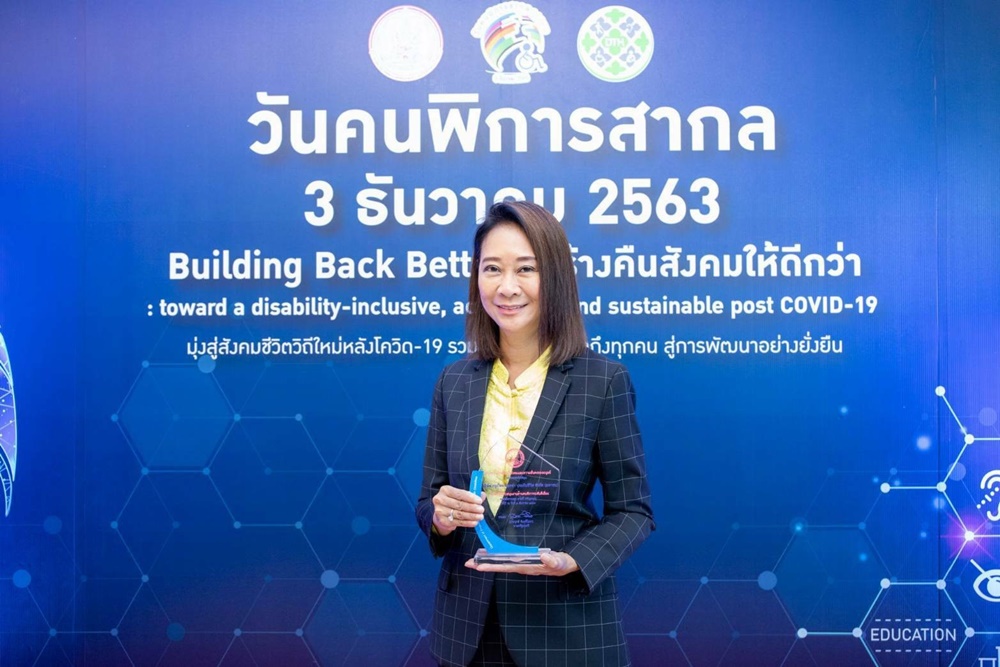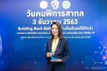 บมจ.กรุงไทย-แอกซ่า ประกันชีวิต โดยคุณสรัสวดี คุปตพงศ์ ประธานเจ้าหน้าที่บริหารสายงานทรัพยากร บุคคลเพื่อพันธมิตรธุรกิจ ตัวแทนบริษัทฯ รับมอบโล่ประกาศเกียรติคุณ "องค์กรที่สนับสนุนงานด้านคนพิการดีเยี่ยม ประจำปี 2563" จาก นายจุติ ไกรฤกษ์ รัฐมนตรีว่าการกระทรวงพัฒนาสังคมและความมั่นคงของมนุษย์ เนื่องในวันคนพิการสากล ประจำปี 2563