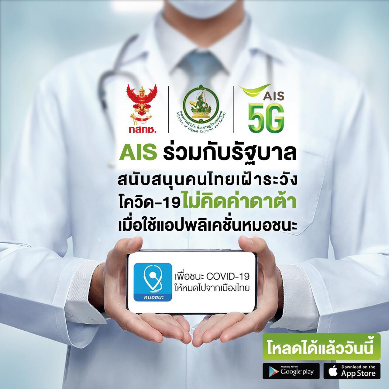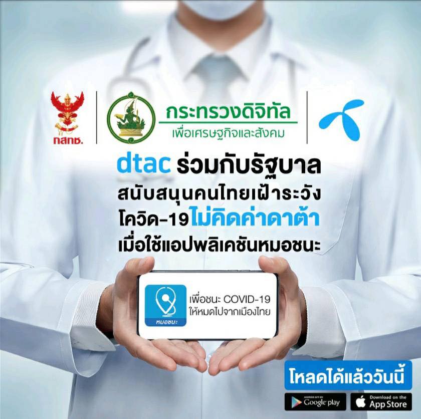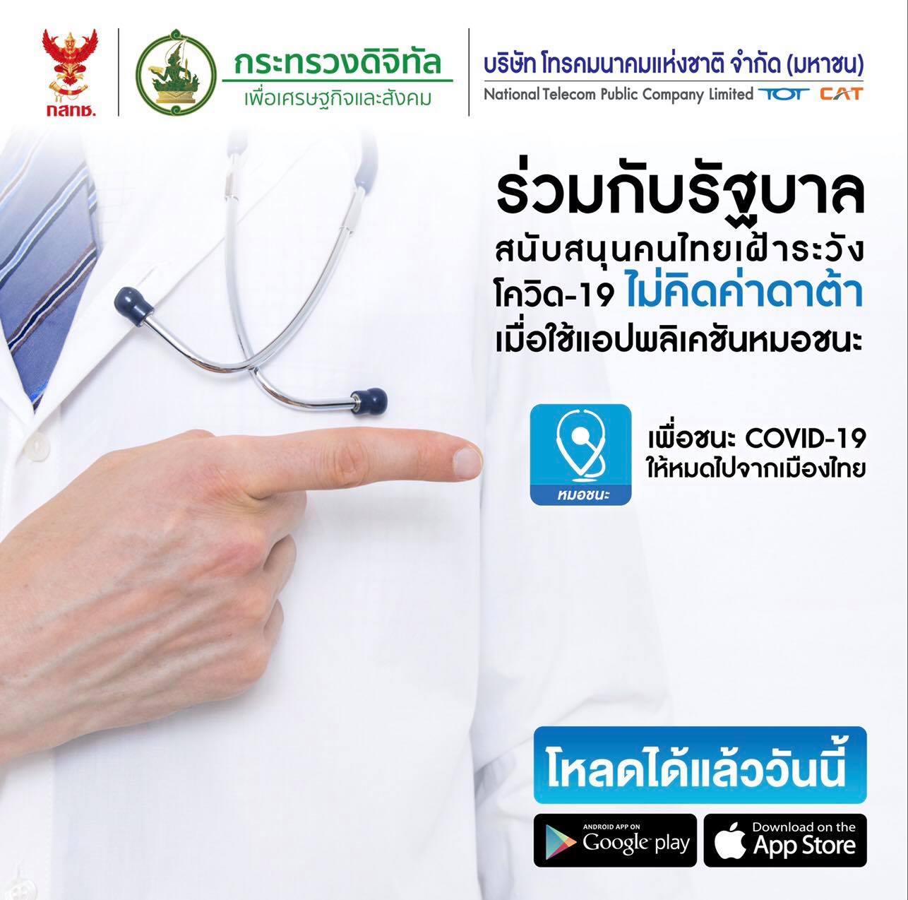 ด้วยการสนับสนุนการใช้ แอปพลิเคชัน "หมอชนะ" โดยไม่คิดค่าดาต้าเมื่อประชาชนใช้แอปพลิเคชันหมอชนะ เพื่อชนะ COVID-19 ให้หมดไปจากเมืองไทย