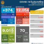 แบ่งเป็นการติดเชื้อในประเทศ 9,777 ราย จากการคัดกรองเชิงรุก 3,707 ราย รักษาหายแล้ว 9,015 ราย เหลือรักษาอยู่ 2,969 ราย ส่วนผู้ป่วยอาการหนักที่ต้องใส่ท่อช่วยหายใจมี 10 ราย และมีผู้เสียชีวิตสะสม เท่าเดิมคือ 70 ราย