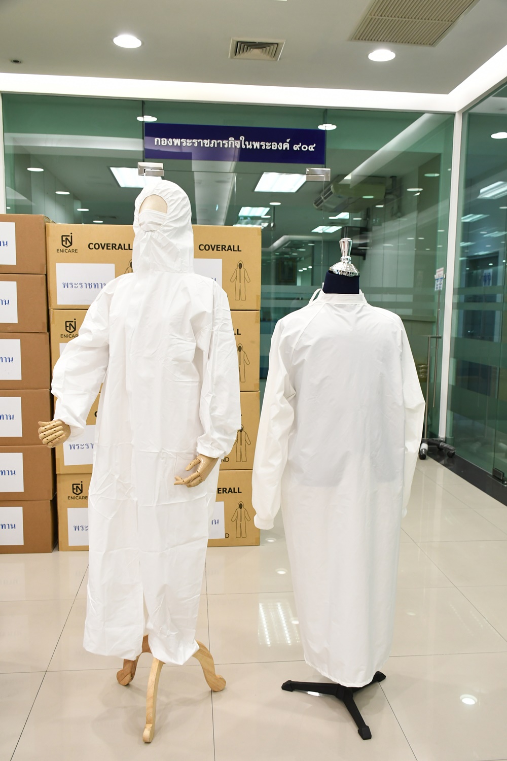 นายอนุทินกล่าวต่อว่า สำหรับชุดอุปกรณ์ป้องกันส่วนบุคคล 7 แสนชุดที่ได้รับพระราชทาน ประกอบด้วย เสื้อคลุมแขนยาว (Isolation Gown) 4 แสนชุด ชุดสวมคลุมร่างกายชิ้นเดียว มีฮู้ดคลุมคอและศีรษะ (Coverall Gown) 1 แสนชุด และเสื้อคลุมแขนยาวชนิดใช้ซ้ำได้ (Reusable Isolation Gown) 2 แสนชุด