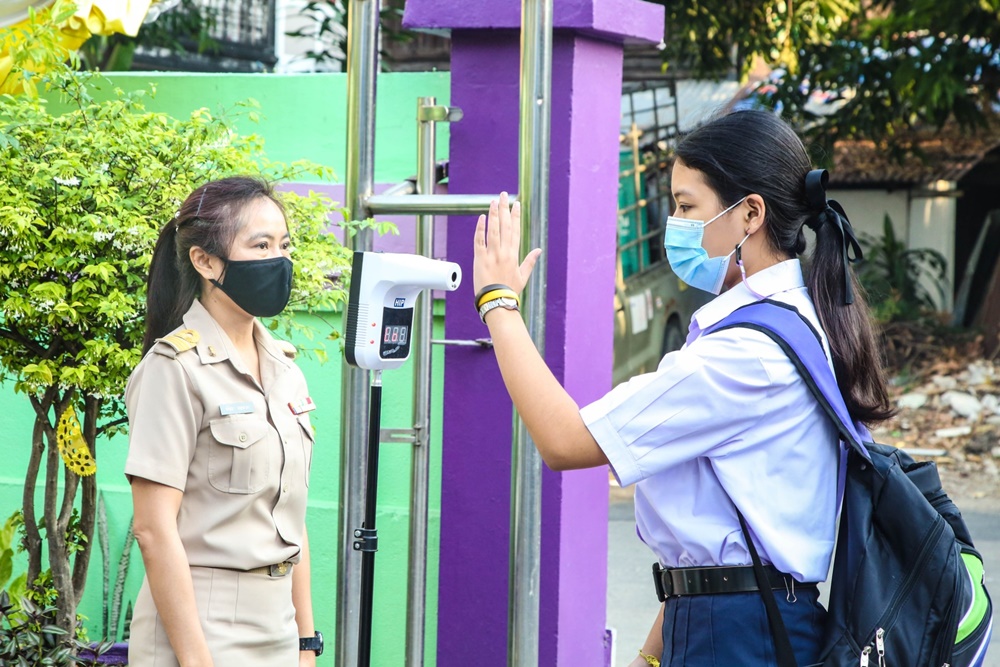 อีกทั้งทุกโรงเรียนยังให้ความสำคัญต่อความเข้มงวด ในเรื่องการใส่หน้ากาก การล้างมือ การตรวจอุณหภูมิ และการเว้นระยะห่าง ซึ่งถือเป็นเรื่องที่สำคัญ ที่ทุกๆ คน ได้แก่ ผู้บริหาร ครู นักเรียน และผู้ปกครอง ต้องมีความเข้าใจ เพราะวันนี้เรายังอยู่ในช่วงที่กำลังมีการแพร่ระบาดของ Covid-19 แม้จะเปิดเรียนแล้วก็ตาม