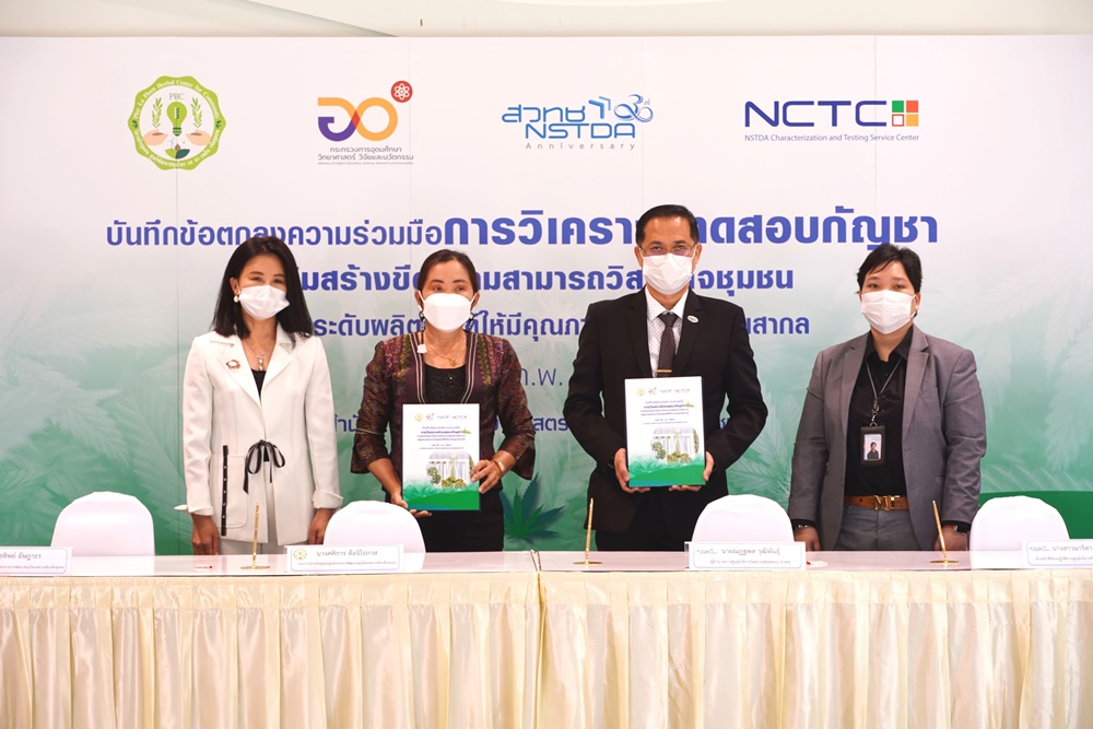 กระทรวงการอุดมศึกษาวิทยาศาสตร์ วิจัยและนวัตกรรม (อว.) โดยศูนย์บริการวิเคราะห์ทดสอบ สำนักงานพัฒนาวิทยาศาสตร์และเทคโนโลยีแห่งชาติ (สวทช.) จัดแถลงข่าว การลงนามการบันทึกข้อตกลงความร่วมมือการวิเคราะห์ทดสอบกัญชา เพื่อเสริมสร้างขีดความสามารถวิสาหกิจชุมชน ระหว่าง วิสาหกิจชุมชนศูนย์กลางการพัฒนาสมุนไพรเพลาเพลินเพื่อชุมชน (วพพ.) จ.บุรีรัมย์ กับ ศูนย์บริการวิเคราะห์ทดสอบ สวทช. หรือ NCTC (NSTDA Characterization and Testing Center)
