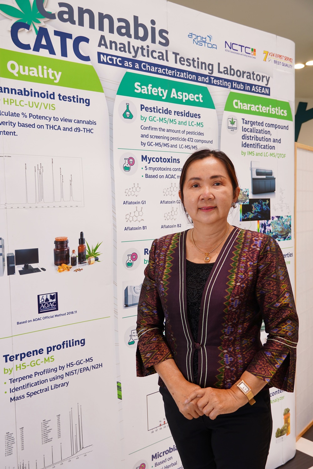 นายณฏฐพล วุฒิพันธุ์ ผู้อำนวยการศูนย์บริการวิเคราะห์ทดสอบ สวทช. กล่าวว่า ศูนย์บริการวิเคราะห์ทดสอบ (NCTC) ภายใต้สำนักงานพัฒนาวิทยาศาสตร์และเทคโนโลยีแห่งชาติ (สวทช.) กระทรวงการอุดมศึกษาวิทยาศาสตร์ วิจัยและนวัตกรรม (อว.) เป็นศูนย์กลางในการพัฒนาและส่งเสริมงานบริการวิเคราะห์ทดสอบ ด้านวิทยาศาสตร์ ด้วยเทคโนโลยีที่ทันสมัย ควบคุมระบบคุณภาพห้องปฏิบัติการให้เป็นไปตามมาตรฐานสากล โดยให้บริการวิเคราะห์ทดสอบสนับสนุนกลุ่มงานอุตสาหกรรมทั้งในและนอกประเทศ สร้างผลิตภัณฑ์และบริการที่มีคุณภาพ ด้วยโครงสร้างพื้นฐานด้านคุณภาพ (National Quality Infrastructure) โดยศูนย์บริการวิเคราะห์ทดสอบ หรือ NCTC นั้นเป็นผู้ให้บริการวิเคราะห์ทดสอบตามวิธีมาตรฐานสากล ได้จัดตั้งห้องปฏิบัติการวิเคราะห์ทดสอบด้านกัญชา กัญชง สารสกัดและผลิตภัณฑ์กัญชา กัญชง (Cannabis Analytical Testing Center) หรือ CATC เพื่อวัตถุประสงค์ทางการแพทย์และอุตสาหกรรมที่เกี่ยวข้อง ทำให้สามารถนำข้อมูลไปใช้ในการกำหนดมาตรฐานสินค้าอุตสาหกรรม เพื่อยกระดับคุณภาพและความปลอดภัยของสินค้า สนับสนุนการทำวิจัยและพัฒนาสินค้ามูลค่าสูงให้กับทั้งภาครัฐและเอกชน