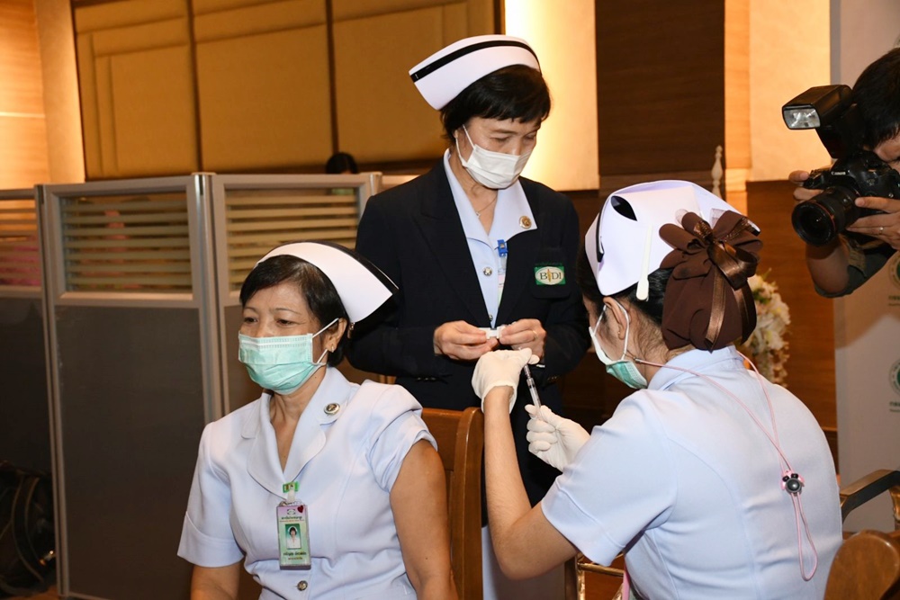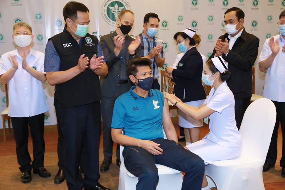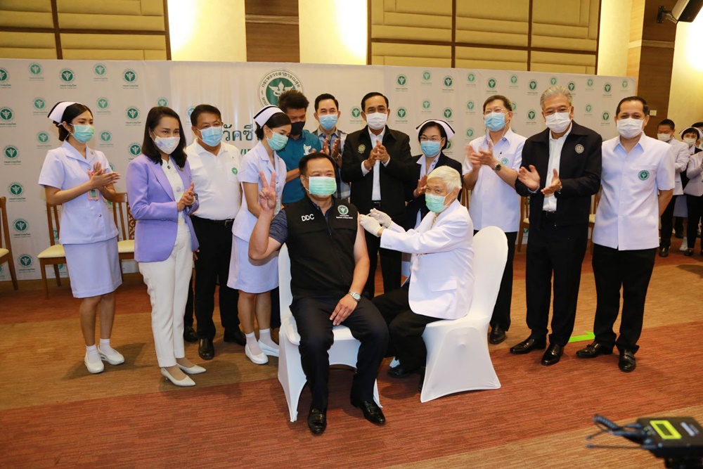 โดยนายอนุทิน ชาญวีรกูล รองนายกรัฐมนตรีและรัฐมนตรีว่าการกระทรวงสาธารณสุข ได้รับการฉีดวัคซีนโควิด19 เข็มแรกของไทย และดร.กนกวรรณ วิลาวัลย์ รัฐมนตรีช่วยว่าการกระทรวงศึกษาธิการ เป็นผู้หญิงคนแรกของไทย ได้รับเกียรติ รับการฉีดวัคซีนจาก ศ.นพ.ยง ภู่วรวรรณ หัวหน้าศูนย์เชี่ยวชาญเฉพาะทางด้านไวรัสวิทยาคลินิก ฯ ทั้งนี้ ภายหลังเยี่ยมชม นายกรัฐมนตรี ได้กล่าวขอบคุณและให้กำลังใจ ผู้บริหารกระทรวงสาธารณสุข บุคลากรทางการแพทย์ ที่พยายามแก้ไขสถานการณ์โควิด 19 จนทำให้ประเทศไทยมีศักยภาพด้านการแพทย์และสาธารณสุขเป็นอันดับต้นของโลก