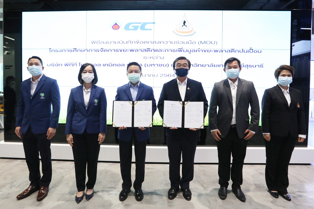 บริษัท พีทีที โกลบอล เคมิคอล (จำกัด) มหาชน หรือ GC ร่วมมือกับมหาวิทยาลัยเทคโนโลยีสุรนารี หรือ SUT ในโครงการศึกษาการจัดการขยะพลาสติกจากต้นทางสู่ปลายทางแบบครบวงจร ช่วยเพิ่มมูลค่าขยะพลาสติกปนเปื้อนต่างๆ โดยการรีไซเคิลพลาสติกผ่านกระบวนการ Chemical Recycling หรือ กระบวนการแปรรูปขยะพลาสติกปนเปื้อน ให้สามารถนำกลับมาใช้เป็นเชื้อเพลิง หรือวัตถุดิบในอุตสาหกรรมเคมีภัณฑ์ พร้อมสร้างความเชื่อมโยงกับทุกภาคส่วน (Ecosystem) ด้วยแผนการจัดการขยะพลาสติก (End-to-End Waste Management) เพื่อตอบโจทย์เป้าหมายการพัฒนาที่ยั่งยืนของโลก (SDGs) และ การดำเนินงานตามหลักเศรษฐกิจหมุนเวียน (Circular Economy)
