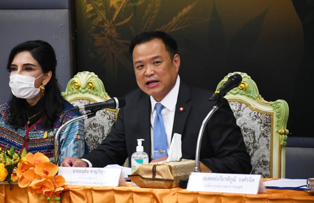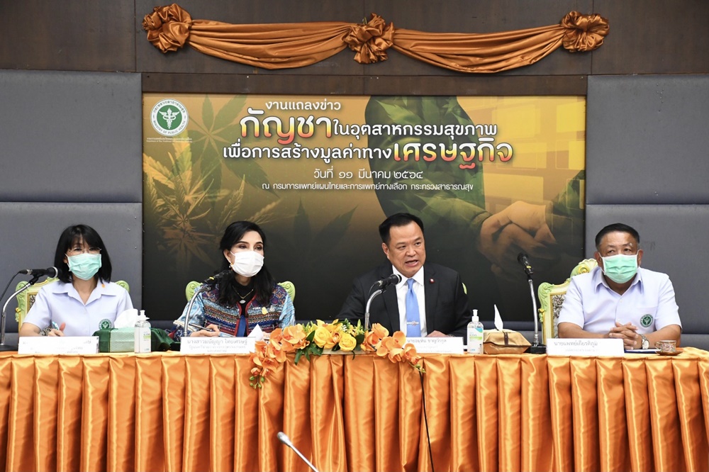 วันนี้ (11 มีนาคม 2564) ที่กรมการแพทย์แผนไทยและการแพทย์ทางเลือก กทม. นายอนุทิน ชาญวีรกูลรองนายกรัฐมนตรีและรัฐมนตรีว่าการกระทรวงสาธารณสุข พร้อมด้วยนางสาวมนัญญา ไทยเศรษฐ์ รัฐมนตรีช่วยว่าการกระทรวงเกษตรและสหกรณ์ นายแพทย์เกียรติภูมิ วงศ์รจิต ปลัดกระทรวงสาธารณสุข และแพทย์หญิงอัมพร เบญจพลพิทักษ์ อธิบดีกรมการแพทย์แผนไทยและการแพทย์ทางเลือก ร่วมแถลงข่าวการพัฒนากัญชาเพื่อเศรษฐกิจไทย ในการประชุมเชิงปฏิบัติการกัญชาในอุตสาหกรรมสุขภาพและการจับคู่เจรจาธุรกิจส่วนของกัญชาที่ไม่ใช่ยาเสพติด