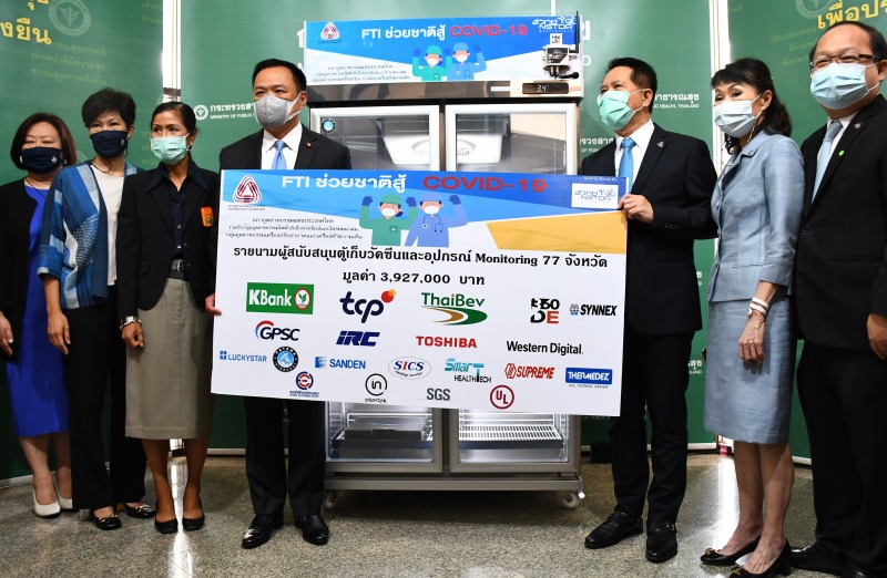 กระทรวงสาธารณสุข รับมอบตู้เก็บวัคซีน และอุปกรณ์ Monitoring ให้แก่สถานพยาบาลของรัฐ 77 จังหวัด มูลค่า 3,927,000 บาท จากสภาอุตสาหกรรมแห่งประเทศไทย ร่วมกับกลุ่มอุตสาหกรรมไฟฟ้าอิเล็กทรอนิกส์และโทรคมนาคม กลุ่มอุตสาหกรรมเครื่องปรับอากาศและเครื่องทำความเย็น และเครือข่ายภาคเอกชน