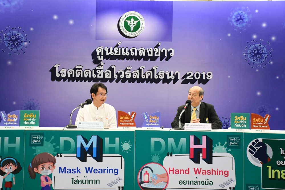 ที่ศูนย์แถลงข่าวสถานการณ์โรคติดเชื้อไวรัสโคโรนา 2019 กระทรวงสาธารณสุข จ.นนทบุรี นพ.ธนรักษ์ ผลิพัฒน์ ผู้ตรวจราชการกระทรวงสาธารณสุข เขตสุขภาพที่ 5 และ นพ.ทวี โชติพิทยสุนนท์ ผู้ทรงคุณวุฒิ คณะกรรมการโรคติดต่อแห่งชาติ และแพทย์ผู้เชี่ยวชาญด้านโรคติดเชื้อ แถลงข่าวสถานการณ์โรคโควิด 19 ใน จ.สมุทรสาครและผลกระทบจากการฉีดวัคซีนโควิด 19 ในยุโรป