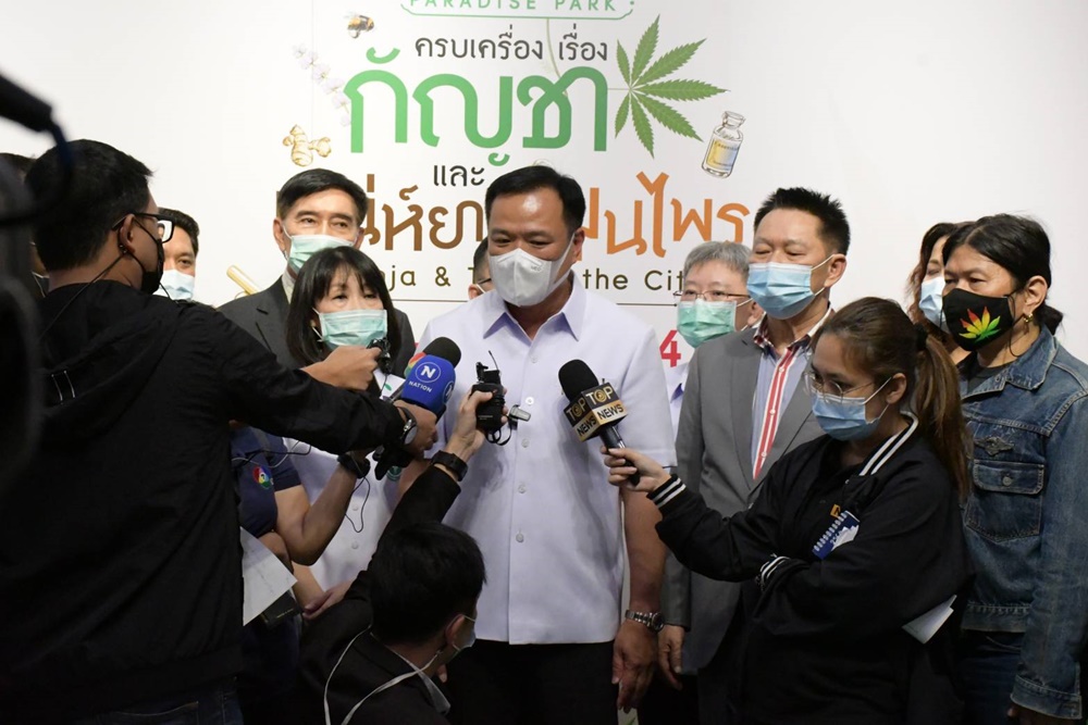 ที่ ศูนย์การค้าพาราไดซ์ พาร์ค กทม. นายอนุทิน ชาญวีรกูล รองนายกรัฐมนตรีและรัฐมนตรีว่าการกระทรวงสาธารณสุข พร้อมด้วย พญ.อัมพร เบญจพลพิทักษ์ อธิบดีกรมการแพทย์แผนไทยและการแพทย์ทางเลือก พล.ร.อ.ชาญชัย เจริญสุวรรณ ประธานเครือข่ายพลังภูมิปัญญาการแพทย์แผนไทย นายสมพล ตรีภพนารถ กรรมการผู้จัดการธุรกิจศูนย์การค้า บริษัท เอ็ม บี เค จำกัด (มหาชน) และคณะผู้บริหารกระทรวงสาธารณสุข เปิดงาน “ครบเครื่องเรื่องกัญชา และเสน่ห์ยาสมุนไพร” เพื่อนำผลิตภัณฑ์สุขภาพ เครื่องสำอาง อาหารจากสมุนไพรไทยและกัญชา มาจัดแสดงและสาธิตวิธีการผลิต การนำไปใช้สร้างความเชื่อมั่นต่อคุณภาพ ประสิทธิภาพและความปลอดภัย ขยายโอกาสทางธุรกิจแก่ผู้ประกอบการ ช่วยกระตุ้นเศรษฐกิจชาติ