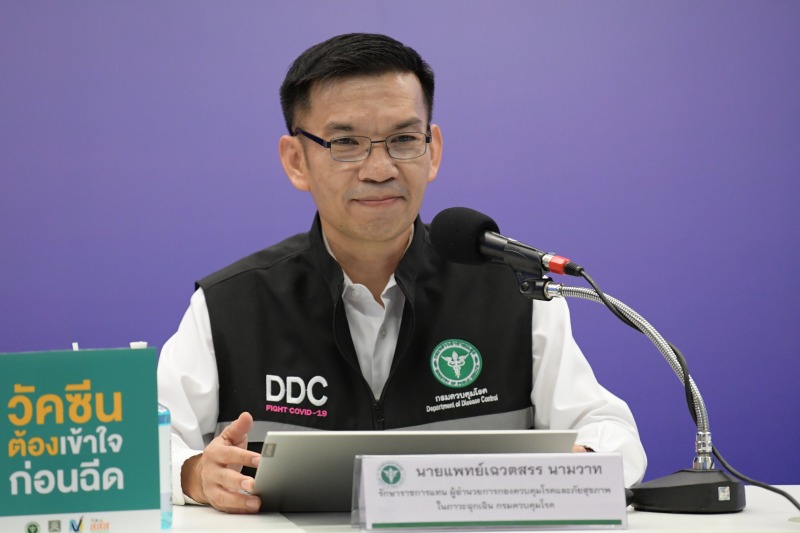 สำหรับจำนวนผู้ได้รับวัคซีนสะสมวันที่ 28 กุมภาพันธ์ – 18 เมษายน 2564 รวม 618,583 ราย เป็นผู้ได้รับเข็มแรก 535,925 ราย และได้รับเข็มที่ 2 จำนวน 82,658 ราย โดยการฉีดวัคซีนไม่ได้ล่าช้า มีการบริหารจัดการเป็นไปตามแผน นอกจากนี้ในระยะที่พบการระบาดในจังหวัดสมุทรสาคร ยังได้จัดหาวัคซีนมาเพิ่มเพื่อใช้ในสถานการณ์เร่งด่วน ได้แก่ วัคซีนของซิโนแวค 2 ล้านโดส ทยอยส่งมา 2 แสนโดส และ 8 แสนโดส ซึ่งฉีดครบภายในเดือนมีนาคม อีก 1 ล้านโดสได้รับเมื่อวันที่ 10 เมษายน กระจายไปจังหวัดต่าง ๆ ทั่วประเทศ เน้นฉีดให้กับบุคลากรทางการแพทย์และสาธารณสุขด่านหน้าให้ครบ 100 เปอร์เซ็นต์ รวมถึงฉีดบุคลากรภาครัฐด่านหน้า ประชาชนที่มีโรคประจำตัว และสำรองใช้ควบคุมการระบาด ทั้งนี้ระยะต่อไปประชาชนจะได้รับวัคซีนหลักคือแอสตร้าเซนเนก้าในเดือนมิถุนายน