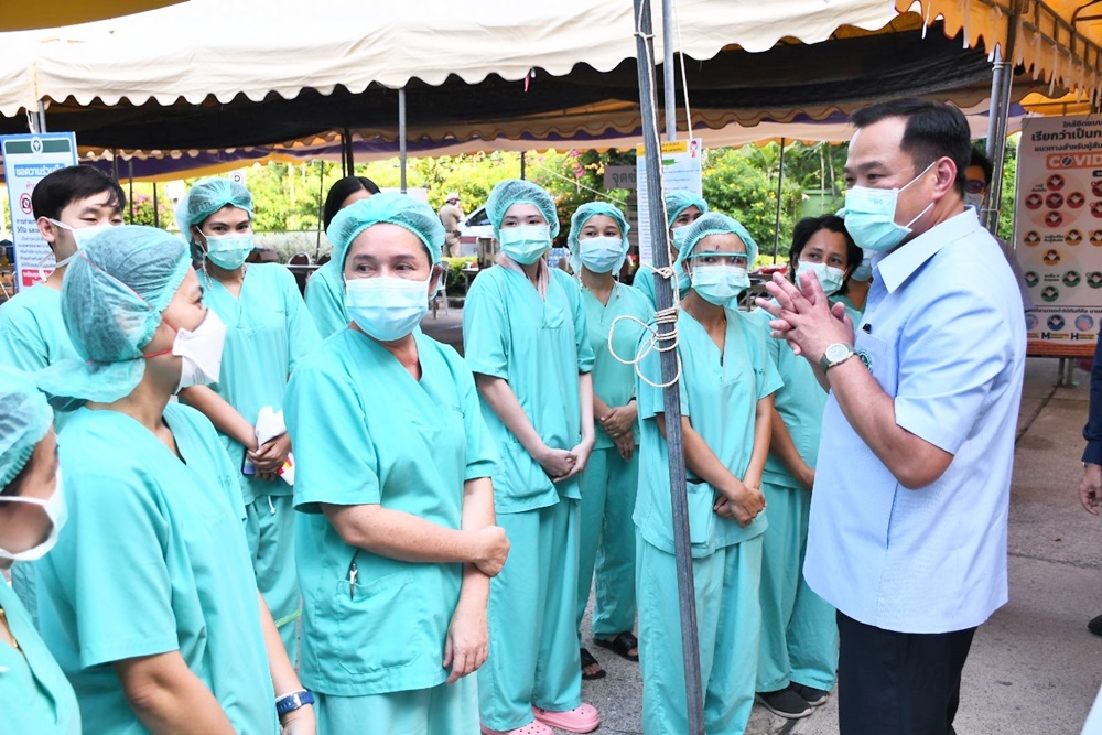 บ่ายวานนี้ (22 เมษายน 2564) ที่โรงพยาบาลหัวหิน จ.ประจวบคีรีขันธ์ นายอนุทิน ชาญวีรกูล รองนายกรัฐมนตรีและรัฐมนตรีว่าการกระทรวงสาธารณสุข พร้อมด้วยนายพัลลภ สิงหเสนี ผู้ว่าราชการ จ.ประจวบคีรีขันธ์ นพ.สุระ วิเศษศักดิ์ รองปลัดกระทรวงสาธารณสุข นพ.ธนรักษ์ ผลิพัฒน์ ผู้ตรวจราชการกระทรวงสาธารณสุขเขตสุขภาพที่ 5 และผู้บริหารกระทรวงสาธารณสุข ลงพื้นที่ติดตามสถานการณ์โควิด 19 และการจัดตั้ง Cohort Ward การรองรับผู้ติดเชื้อโควิด 19 ในโรงพยาบาลหัวหิน พร้อมมอบเจลล้างมือ 5,000 หลอด, ชุดPPE 1,500 ชุด, หน้ากากอนามัย 5,000 กล่อง, ตู้อบฆ่าเชื้อ, ตู้แช่และเครื่องดื่ม เพื่อสนับสนุนการทำงานของบุคลากรทางการแพทย์ รพ.หัวหิน และได้ให้กำลังใจเจ้าหน้าที่ผู้ปฏิบัติงาน และเยี่ยมผู้ติดเชื้อผ่านระบบกล้องวงจรปิดด้วย