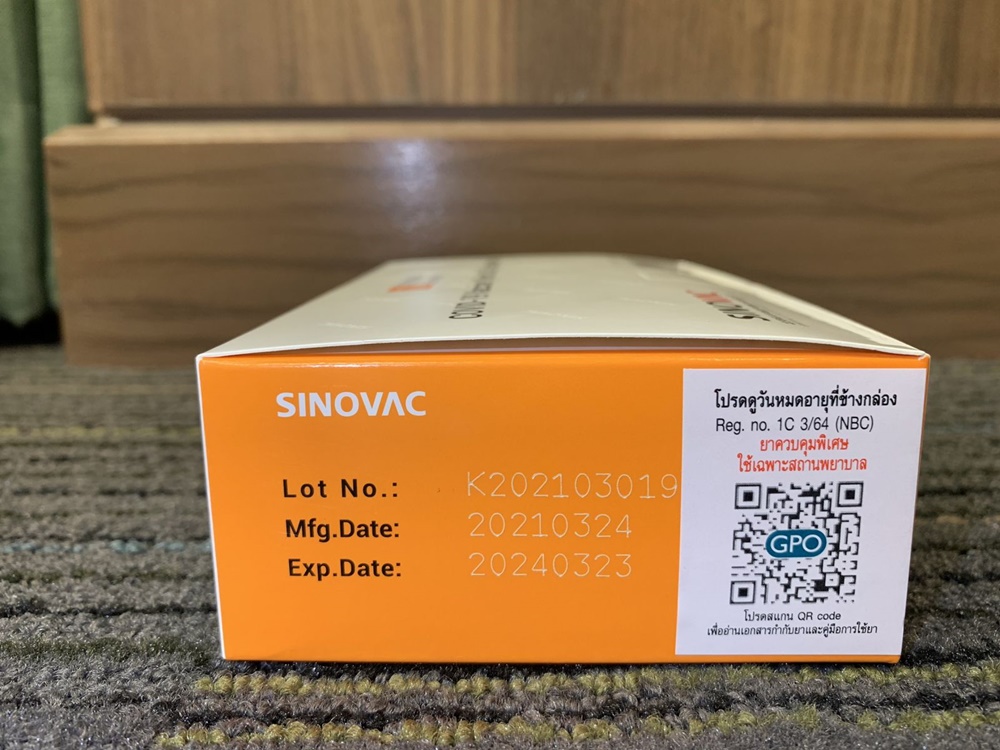“วัคซีนทุกรุ่นที่นำเข้าไม่หมดอายุ ได้ผ่านการส่งตรวจรับรองรุ่นการผลิตจากกรมวิทยาศาสตร์การแพทย์ก่อนการกระจายวัคซีนให้ผู้บริโภค จึงมั่นใจได้ว่าคุณภาพวัคซีนได้ตามมาตรฐาน ความสับสนมีเฉพาะรอบ 8 แสนโดสเท่านั้นที่ทางจีนพิมพ์ให้ 6 เดือน ในงวดถัด ๆ ไปหากมีกรณีที่การพิมพ์อายุยาบนกล่อง 3 ปีจากผู้ผลิต อภ. จะแก้ไขโดยการติดสติกเกอร์วันหมดอายุปิดทับบนกล่อง ให้เป็น 6 เดือนนับจากวันที่ผลิตตามที่ได้รับอนุมัติทะเบียนจาก อย. และจะแจ้งไปยังโรงพยาบาลให้เกิดความเข้าใจตรงกัน” ผู้อำนวยการองค์การเภสัชกรรมกล่าว
