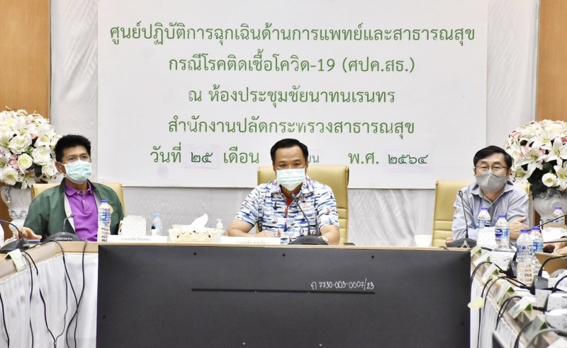 เมื่อวานนี้ (25 เมษายน 2564) ที่กระทรวงสาธารณสุข จ .นนทบุรี นายอนุทิน ชาญวีรกูล รองนายกรัฐมนตรีและรัฐมนตรีว่าการกระทรวงสาธารณสุข พร้อมด้วย ดร.สาธิต ปิตุเตชะ รัฐมนตรีช่วยว่าการกระทรวงสาธารณสุข นายแพทย์เกียรติภูมิ วงศ์รจิต ปลัดกระทรวงสาธารณสุข ประชุมคณะกรรมการอำนวยการ ศปค.สธ.ครั้งที่8/2564 ในวันนี้ที่ประชุมได้พิจารณาประเด็น มาตรการควบคุมป้องกันการแพร่ระบาดโรคโควิด 19 ในระยะถัดไป โดย