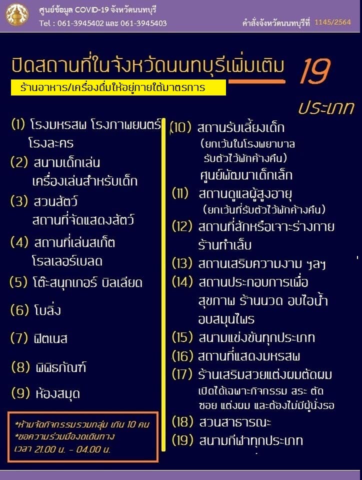 ข้อ 1 ปิดสถานที่ในจังหวัดนนทบุรีเพิ่มเติม 19 ประเภท