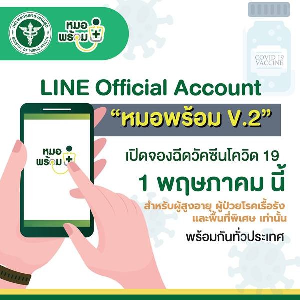 นายแพทย์โสภณ เมฆธน ผู้ช่วยรัฐมนตรีประจำกระทรวงสาธารณสุข กล่าวว่า ขณะนี้ทุกโรงพยาบาลที่ดูแลกลุ่มผู้สูงอายุและผู้ป่วย 7 โรคเรื้อรังได้นำข้อมูลเข้าสู่ระบบหมอพร้อมแล้ว โดยวันนี้ (28 เมษายน 2564) ได้อัปเดตไลน์ “หมอพร้อม” เป็นเวอร์ชัน 2 เพิ่มฟังก์ชันการลงทะเบียนฉีดวัคซีนโควิด 19 ให้ทั้ง 2 กลุ่มลงทะเบียน เลือกโรงพยาบาล นัดหมายวันเวลา รับการฉีดวัคซีน ซึ่งประชาชนทำได้โดยการเพิ่มเพื่อน (Add Friend) ไลน์หมอพร้อม ลงทะเบียนการใช้งาน กรอกเลขบัตรประชาชน 13 หลักให้ถูกต้อง หากมีข้อมูลในระบบแล้วให้ใส่เบอร์โทรศัพท์และกดบันทึก หากไม่มีข้อมูลในระบบให้กรอกข้อมูลส่วนตัวและกดบันทึก จะมีข้อความแจ้งยืนยันการลงทะเบียนสำเร็จ จากนั้นกดเมนูจองฉีดวัคซีนโควิด 19 เพื่อลงทะเบียนการฉีดวัคซีน นัดวันและเวลาฉีดวัคซีนที่สะดวก หากต้องการลงทะเบียนแทนบุคคลในครอบครัว ให้กด “เพิ่มบุคคลอื่น” ที่เมนู “แก้ไขข้อมูลส่วนตัว” ซึ่งสามารถเพิ่มได้ไม่จำกัด แล้วค่อยเข้าเมนูจองฉีดวัคซีนโควิด 19 ต่อไป หากไม่สะดวกมาในวันนัดหมาย มีฟังก์ชันเปลี่ยนการนัดหมายการฉีดวัคซีนใหม่ด้วย หากมีข้อสงสัยเรื่องการใช้ “หมอพร้อม” สอบถามได้ที่ 1422 หรือ 02 792 2333