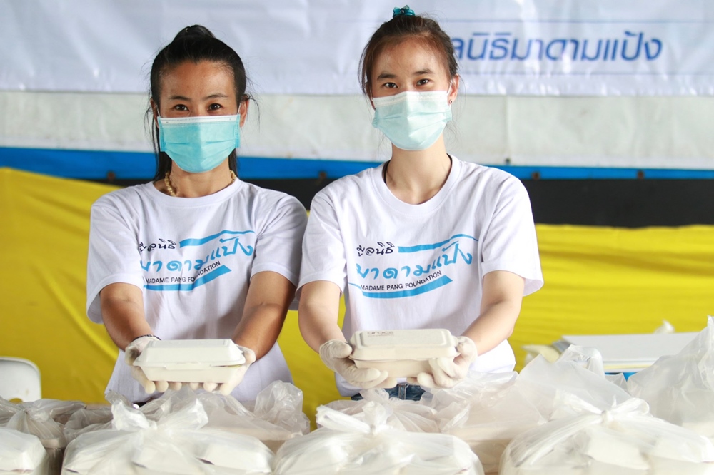 “มาดามแป้ง” นวลพรรณ ล่ำซำ กรรมการผู้จัดการ และประธานเจ้าหน้าที่บริหาร บริษัท เมืองไทยประกันภัย จำกัด (มหาชน) หรือ MTI ส่งกล่องน้ำใจมูลนิธิมาดามแป้ง บรรเทาความเดือดร้อนช่วงกักตัวของชาวคลองเตยเกินร้อยชีวิต ทั้ง 43 ชุมชน พร้อมตั้งครัวมาดามทุกวัน